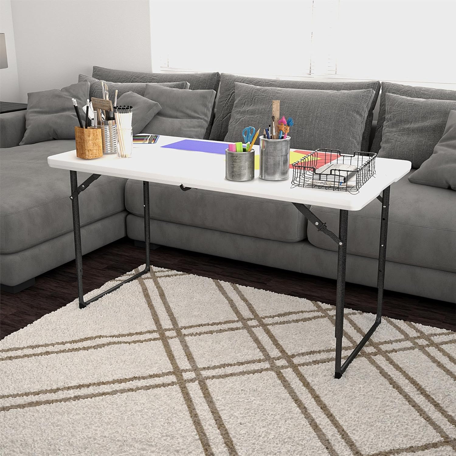 COSCO 4 ft. Centerfold Blow Mold Utility Table, Adjustable Height, White