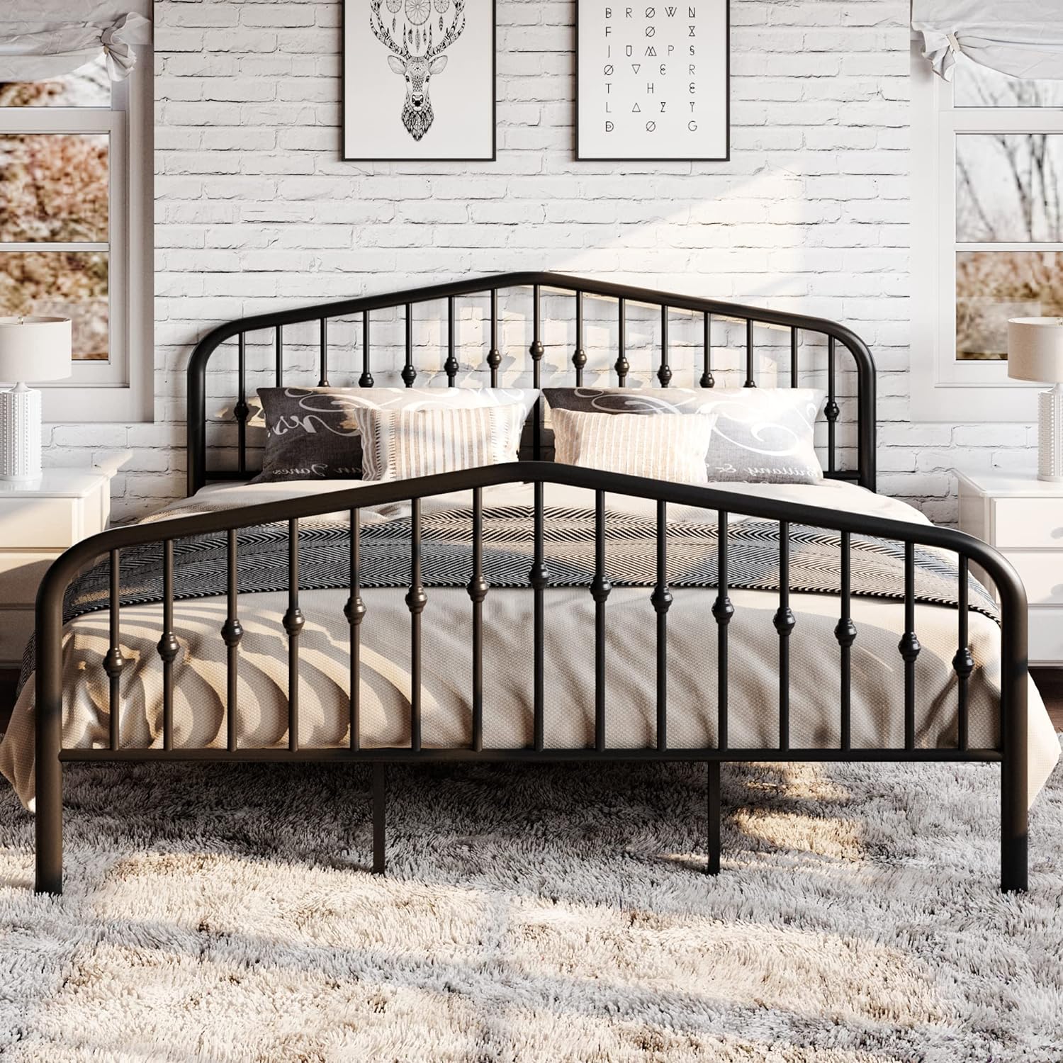 SHA CERLIN King Size Metal Platform Bed Frame with Victorian Style Wrought Iron-Art Headboard/Footboard, No Box Spring Required, Black