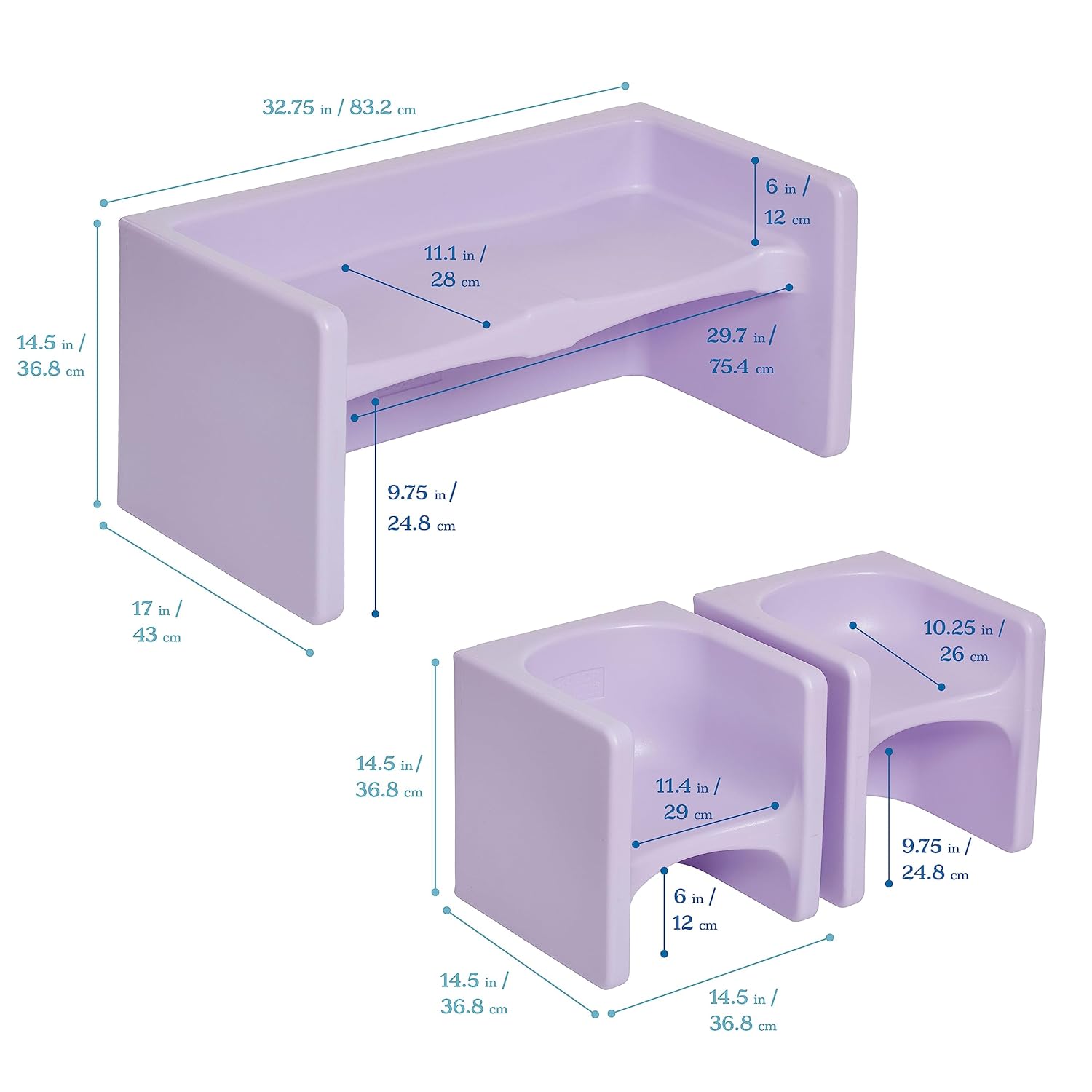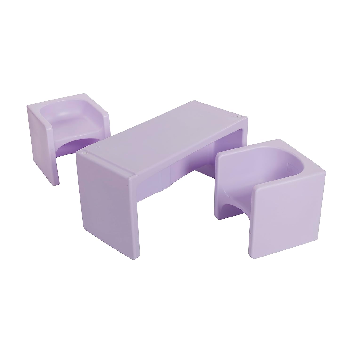 ECR4Kids Tri-Me Table and Cube Chair Set, Multipurpose Furniture, Light Purple, 3-Piece