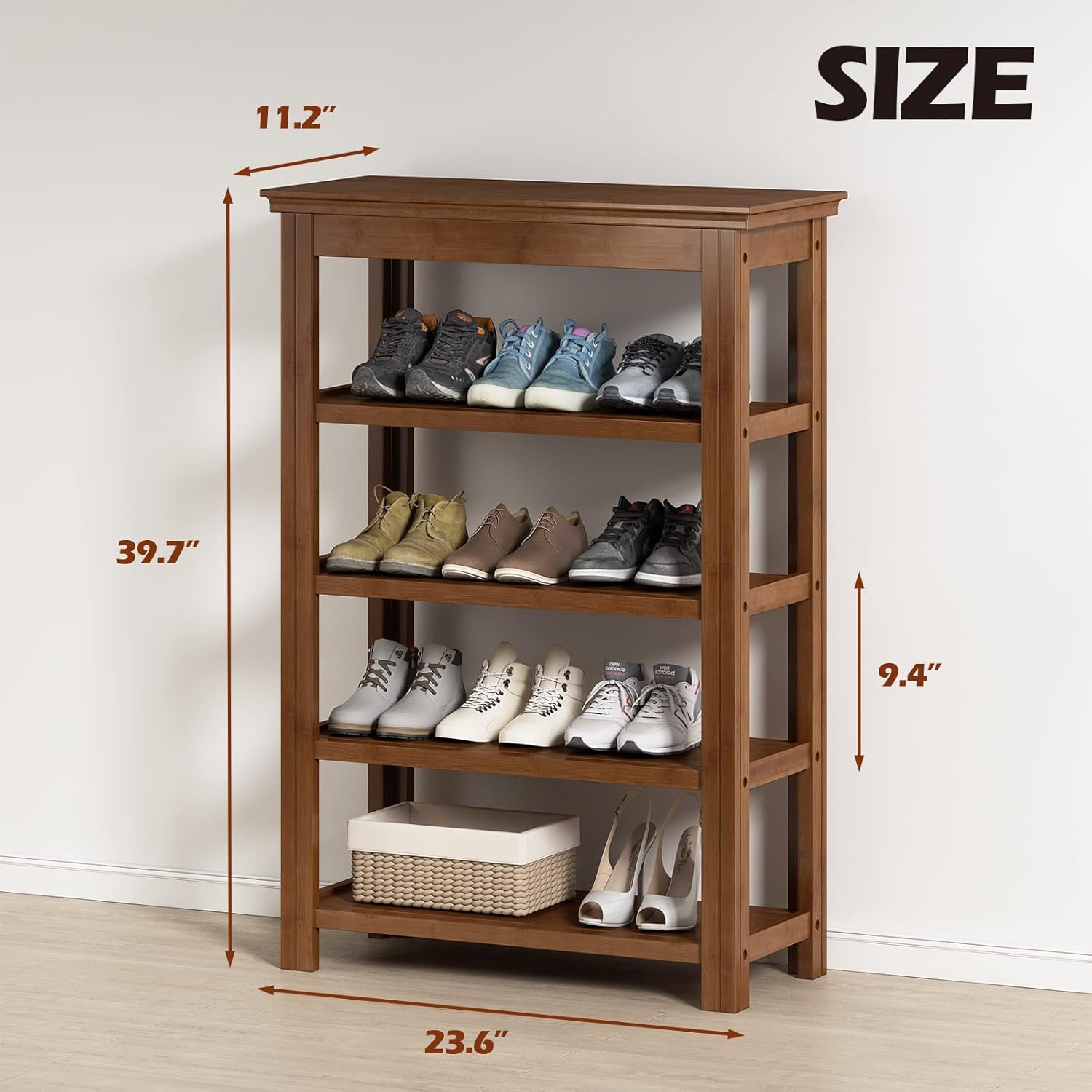 Bamworld Shoe Rack for Front Door Entrance Bamboo Shoe Organizer Free Standing Shoe Cabinet Narrow Shoe Storage Shelf for Entryway, Closet and Doorway Brown, 23.6"