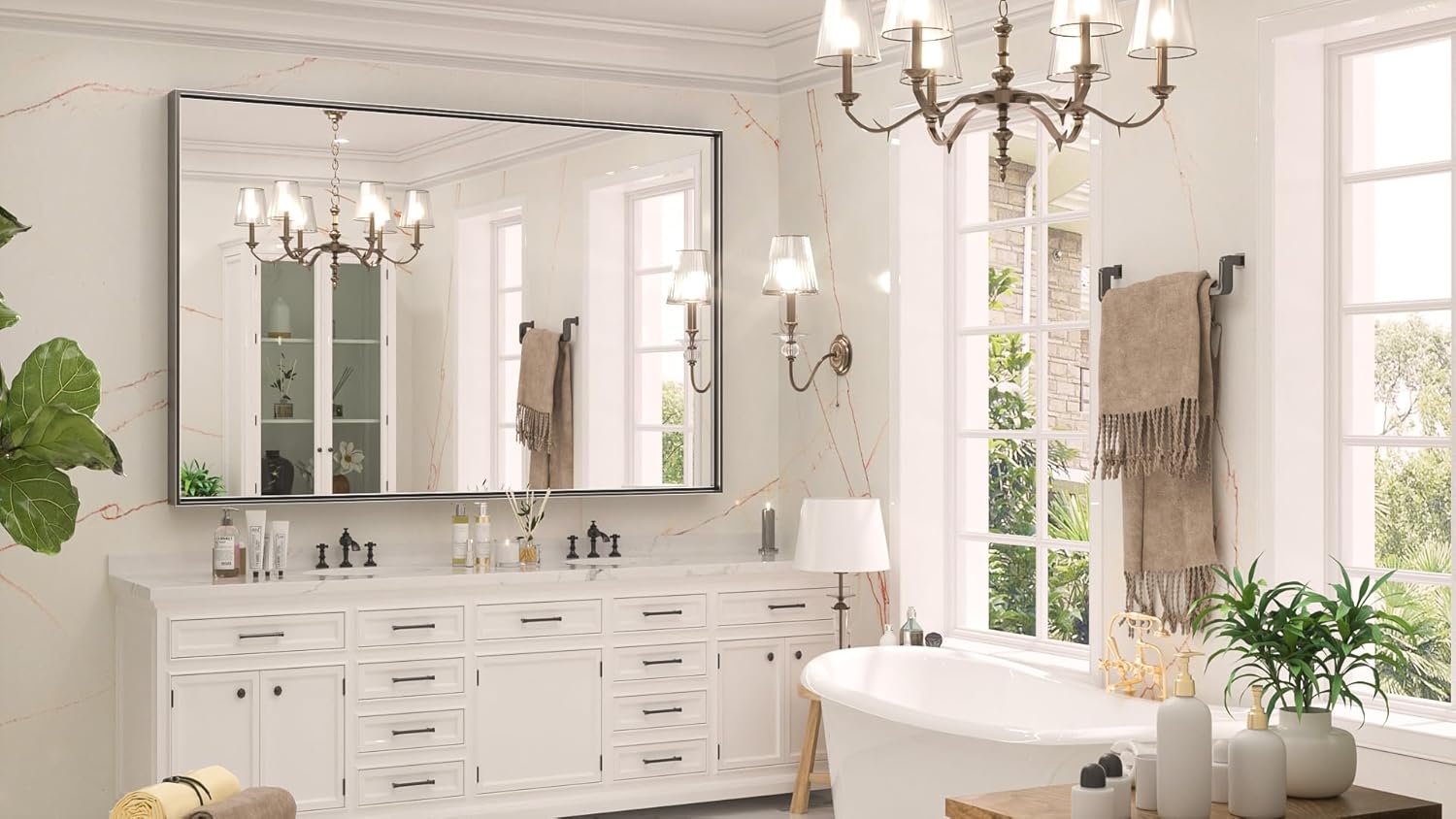 - 【Exceptional Quality】Our black rectangle bathroom mirror is made of HD 5mm glass, bright and anti-distortion, which provides excellent reflection. Aluminum alloy frame and PVC shatterproof film would strengthen the floating glass for safety, waterproof and anti-corrosion in wet bathroom environments.