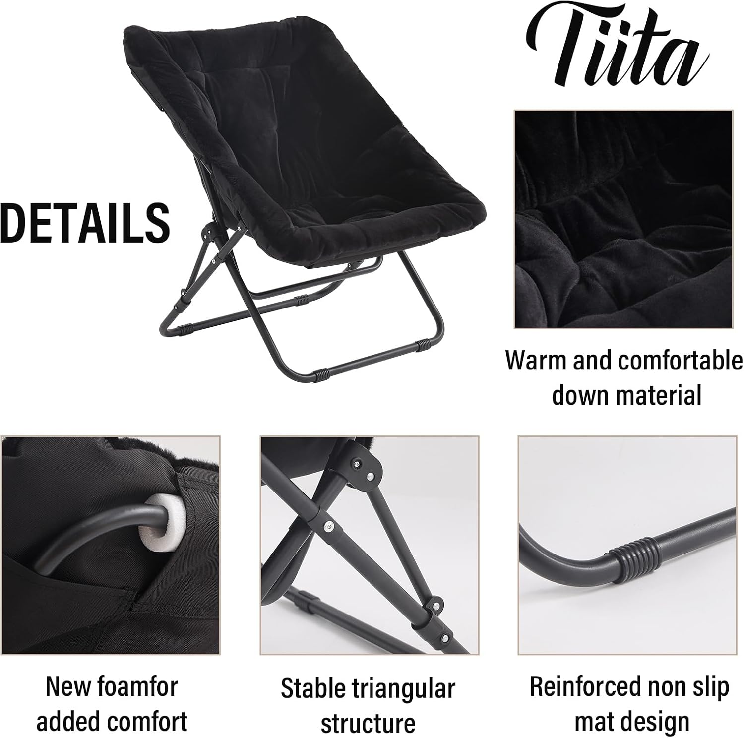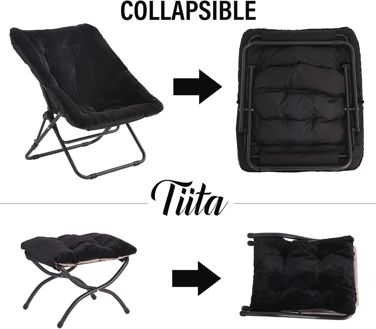 Tiita Folded Chair with Ottoman, Soft Faux Fur Oversized Folding Accent Chair,Lounge Lazy Chair, Metal Frame Moon Chair for Bedroom, Living Room, Dorm Rooms, Garden and Courtyard