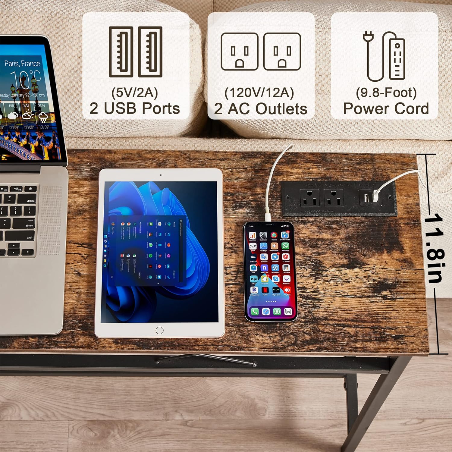 - Couch Table with Charging Station: Comes with 2 outlets, 2 USB ports and an extra long 9.8-foot power cord, this console table can meet your daily charging needs for mobile phones, laptops, lamps and other electronic devices, helping you stay away from low battery worries.