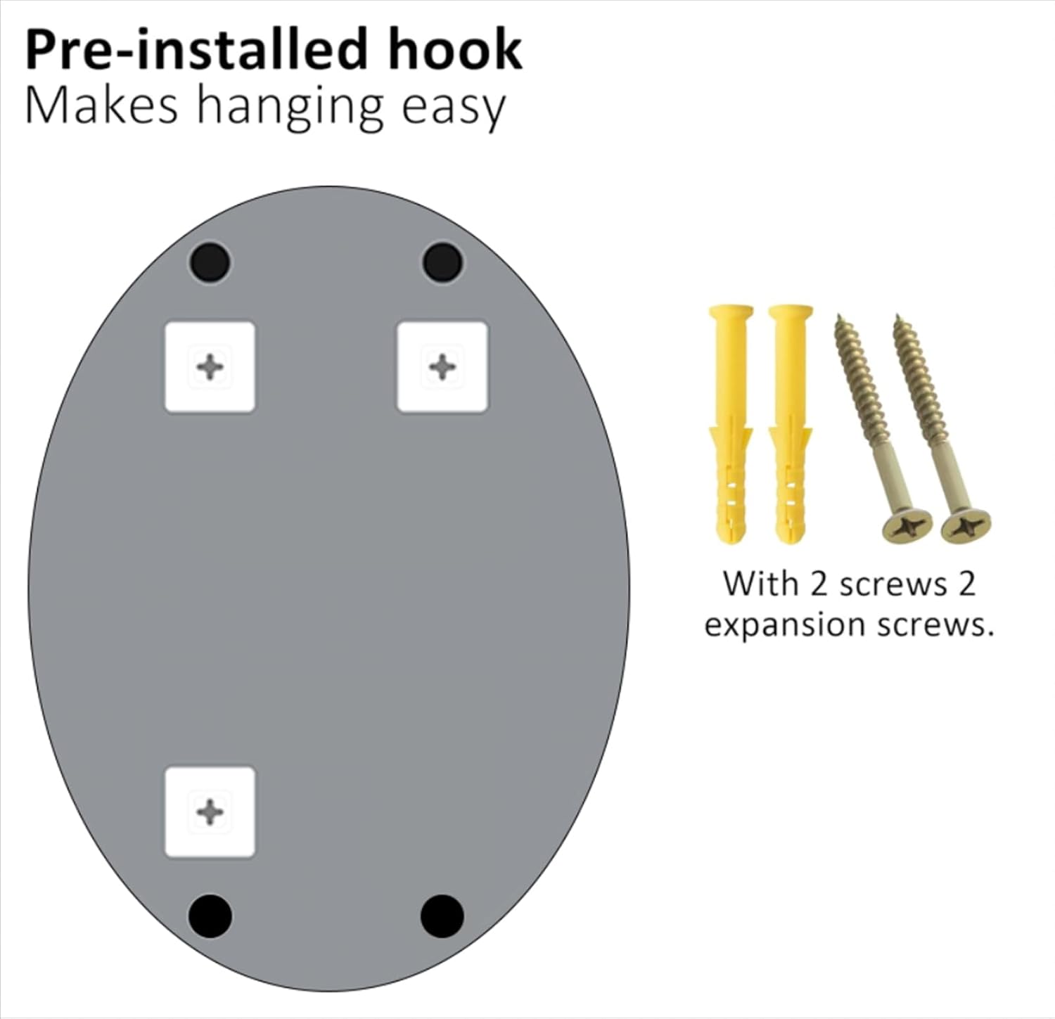 - HD IMAGING All mirror use high-end 4mm thick silver glass mirror, which provides a clear distortion-free reflection, and eliminate the common reflective distortion of low-end mirrors. The oval vanity mirror has a clear image and can bring you the best visual experience