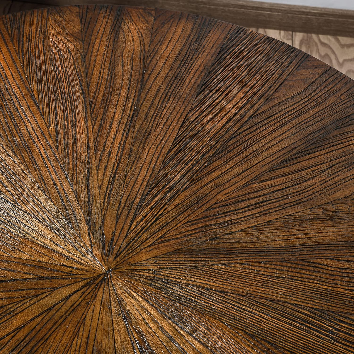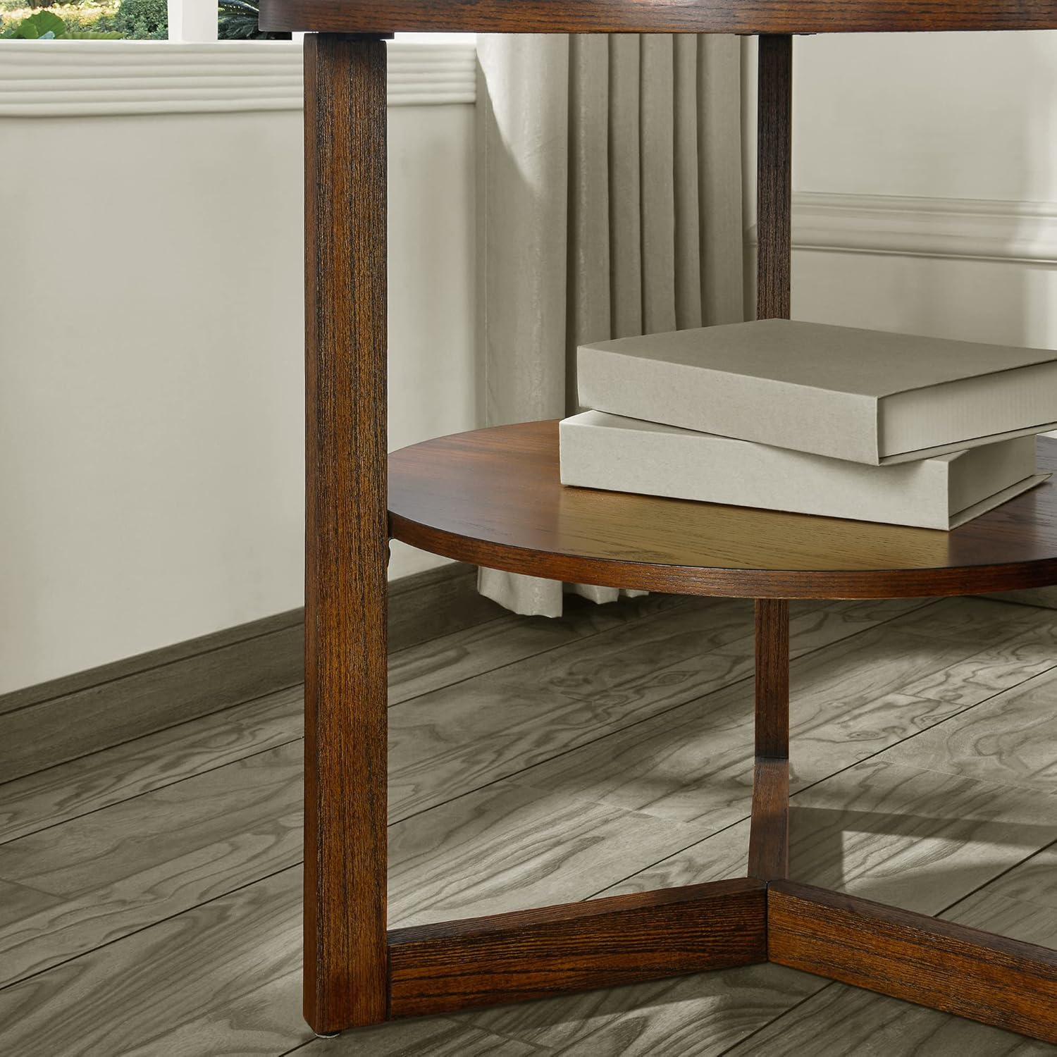 - All Solid Wood Round End Table: Made of selected solid wood, Whether it is the Emission line shaped table top or the "Y" shape legs, making this circular coffee table durable enough. Stable to support stuff on the table(Loading Capacity: 220lbs).The bottom storage shelf add character and style to the entire table.