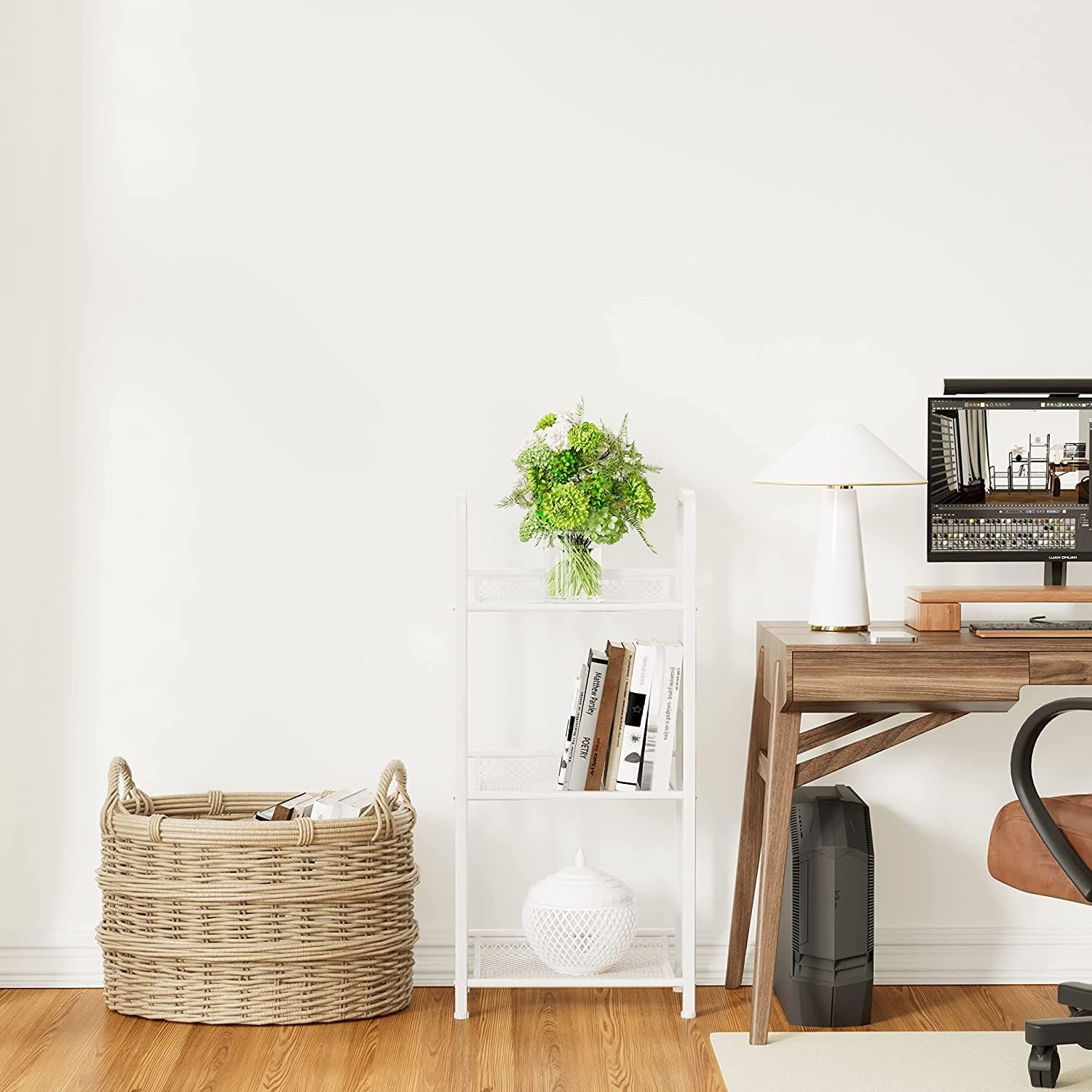 - 【SAVE SPACE】The book shelf occupies a small area, about the size of A4 paper. The book shelves have 4 sizes (2-tiers, 3-tiers, 4-tiers, 5-tiers) and 2 colors (White & Black), 8 kinds of bookshelf so that you have more choices for your room.