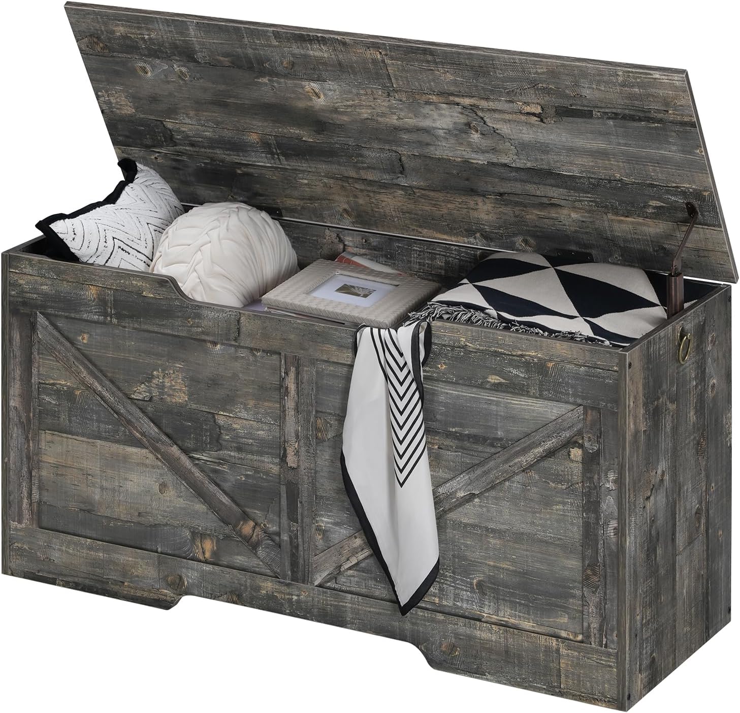 HOOBRO Storage Bench, 39.4” Retro Wooden Storage Chest with U-Shaped Cut-Out Pull, Safety Hinge, Supports 220 lb and Easy Assembly for Toy Box Organizer (Vintage Gray) VP771CW01