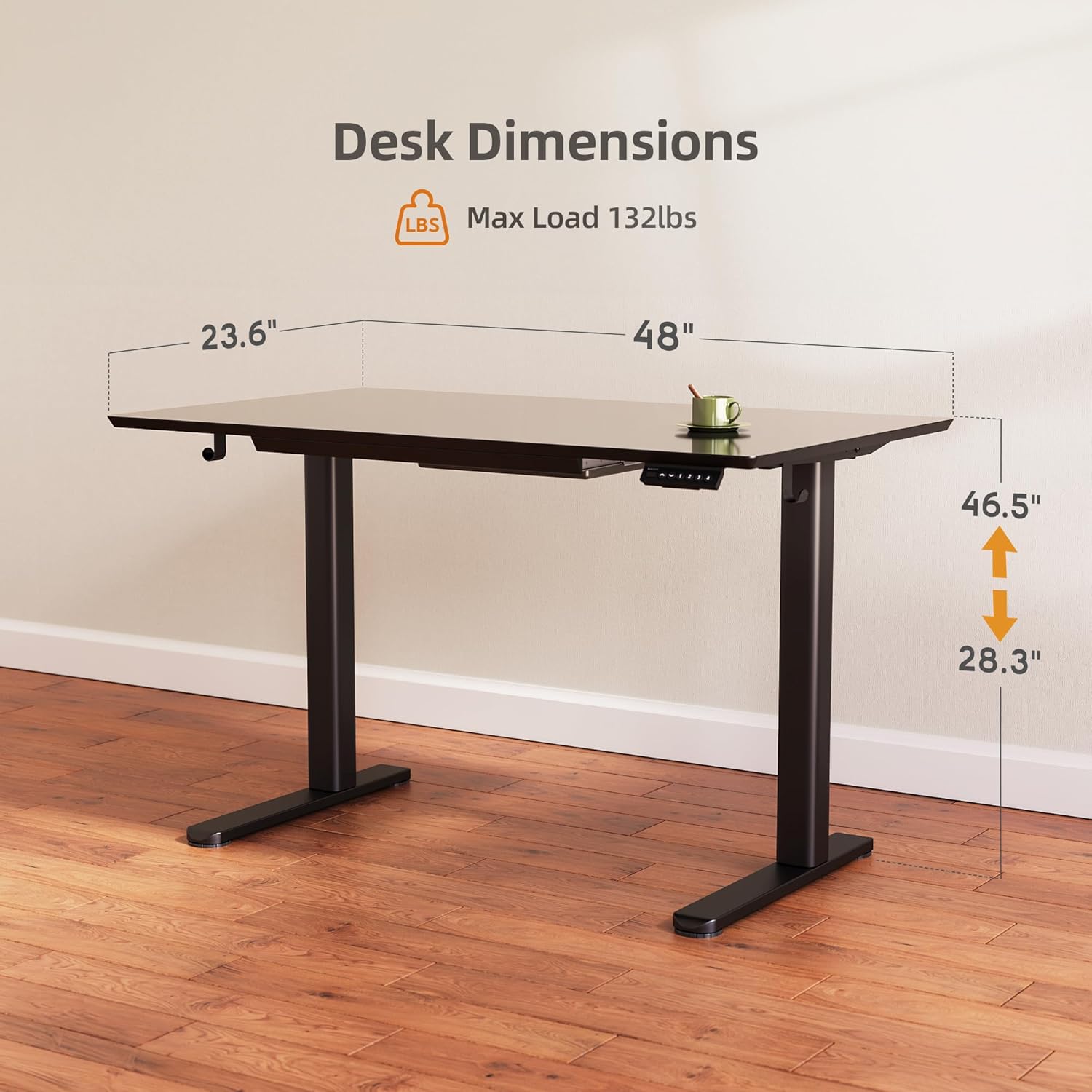- Electric Height Adjustment: Our standing desk is equipped with a robust motor that smoothly adjusts the height from 28.3 inches to 46.5 inches (including the 2.36-inch desktop thickness) with four programmable height presets for quick and easy adjustment to your preferred height, catering to your needs