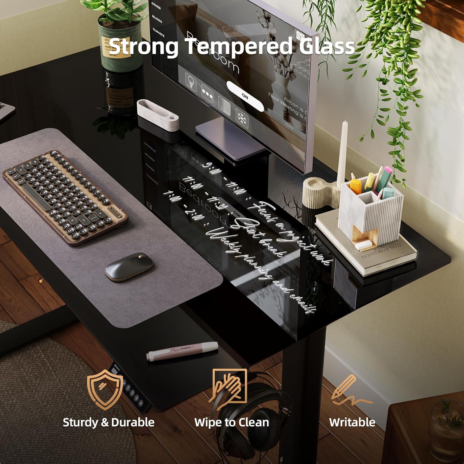 - Simple Assembly: Assembling our glass standing desk is a breeze. Just attach the legs to the top, plug in the power cord, and you're good to go. The desk is capable of supporting up to 132 pounds