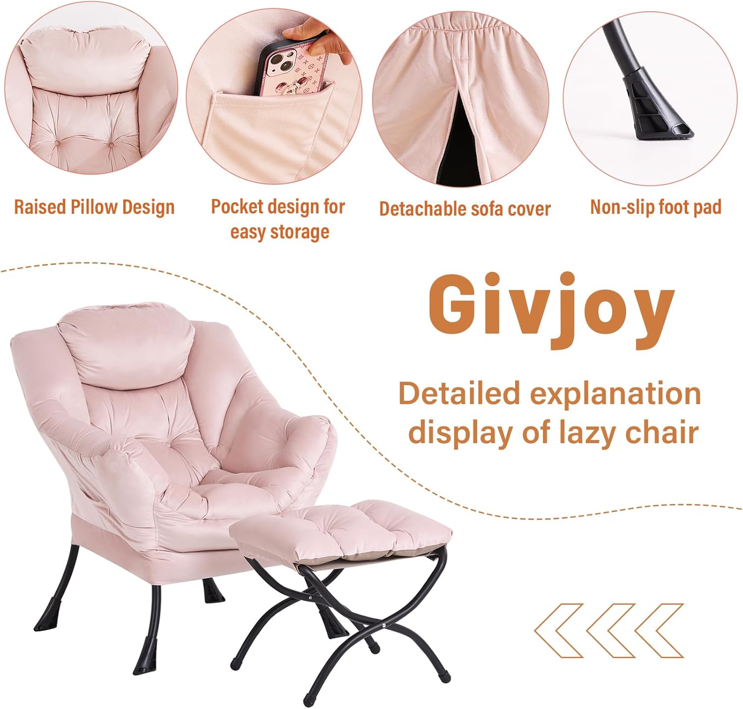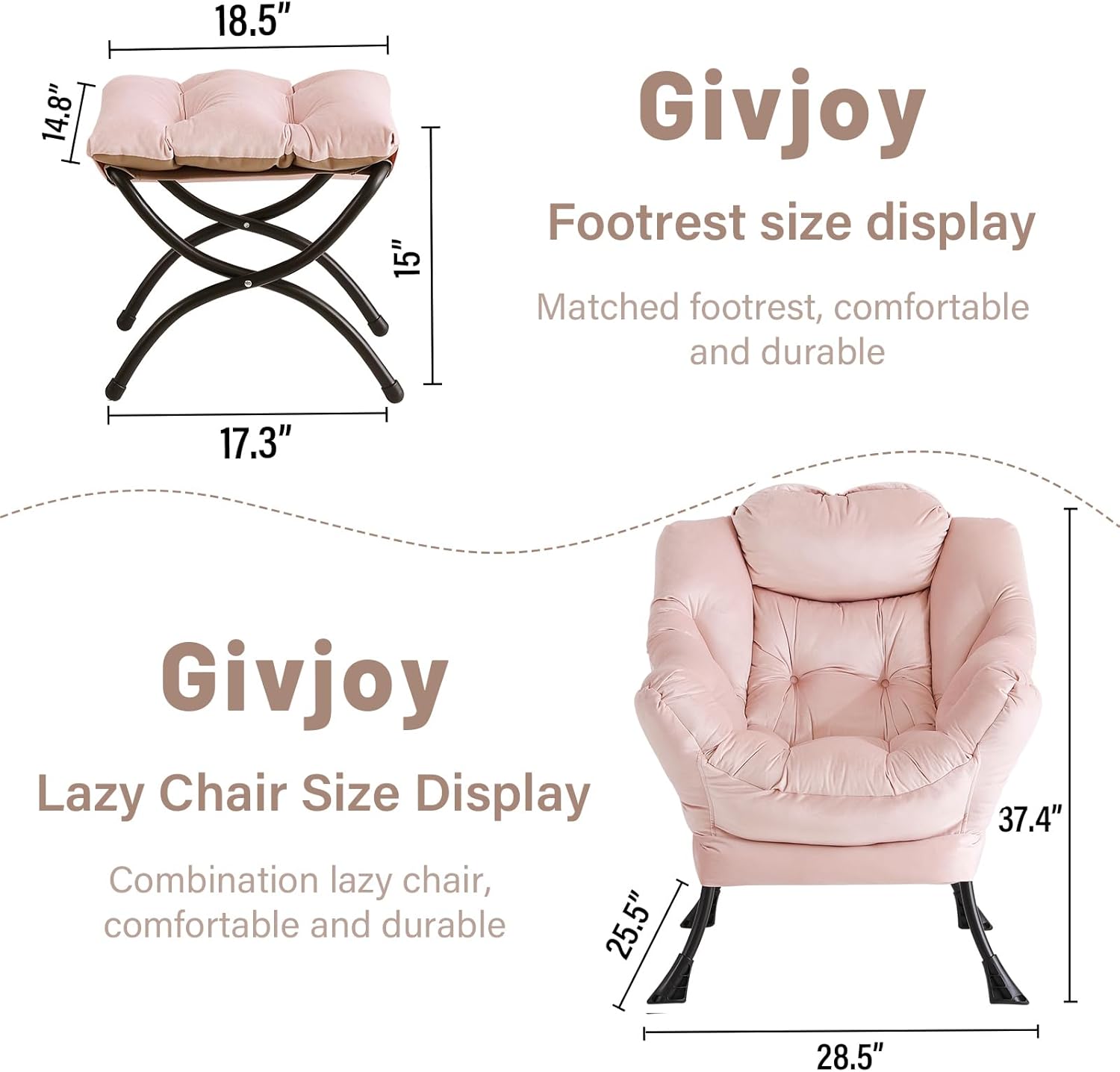 - Living Room Chairs: Our lazy chair with ottoman is constructed with a robust rust-proof steel frame and plush PP cotton padding. This ensures the living room chair's long-lasting durability, preventing rust, deformation, and dents. This comfy lounge chair with a weight capacity of up to 400 pounds, it's perfect for everyone in the family