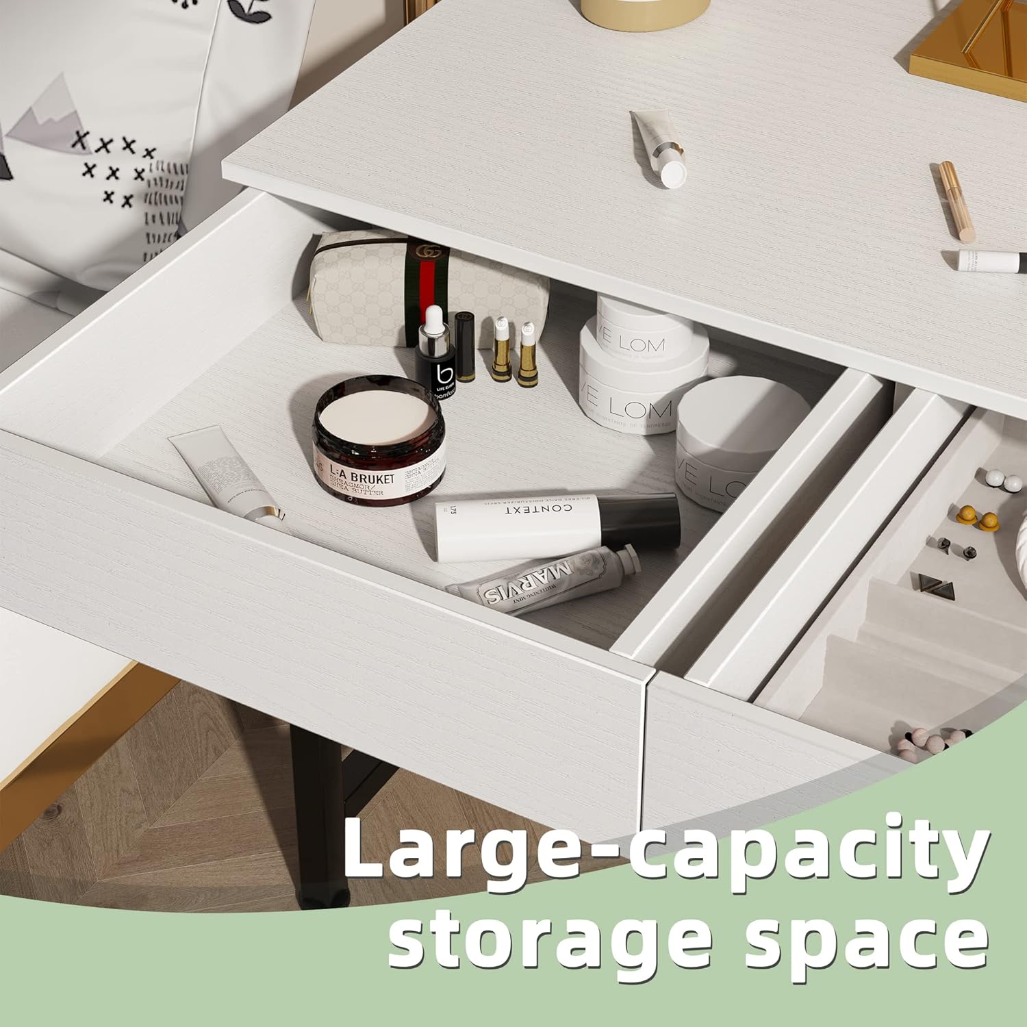 CAIYUN 40Inch Computer Desk with 2 Wooden Drawers, Small Desks for Home Office with Storage,Vanity Desk for Bedroom, Gaming Desk for Small Spaces, Simple Kids Study Writing Desk Table (White, Wooden)