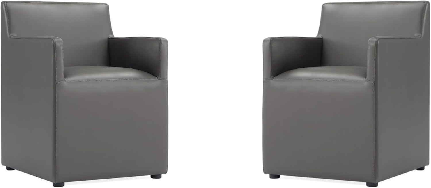 Manhattan Comfort Anna Square Modern Dining Chair with Arms, Head-to-Toe Faux Leather Upholstered Accent Armchair with Plastic Foot Padding, Set of 2, Pewter