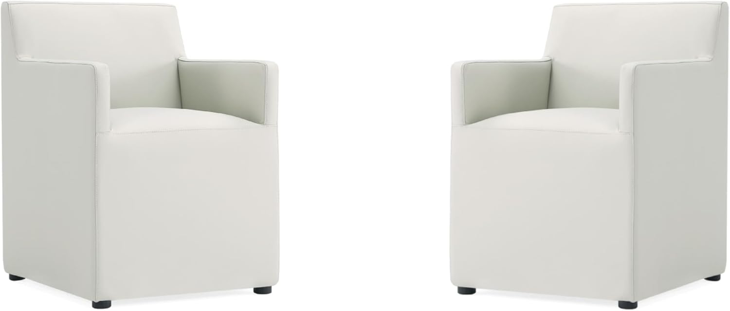 Manhattan Comfort Anna Square Modern Dining Chair with Arms, Head-to-Toe Faux Leather Upholstered Accent Armchair with Plastic Foot Padding, Set of 2, Stone Grey