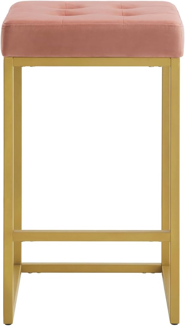 24KF Contemporary Counter Height Bar Stool Set of 2 for Kitchen Island, 26" H Velvet Padded Gold Barstool Bar Chair,5066-Blush