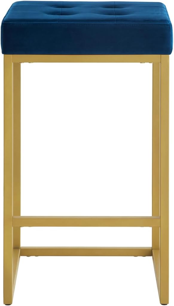 24KF Contemporary Counter Height Bar Stool Set of 2 for Kitchen Island, 26" H Velvet Padded Gold Barstool Bar Chair,5066-Navy
