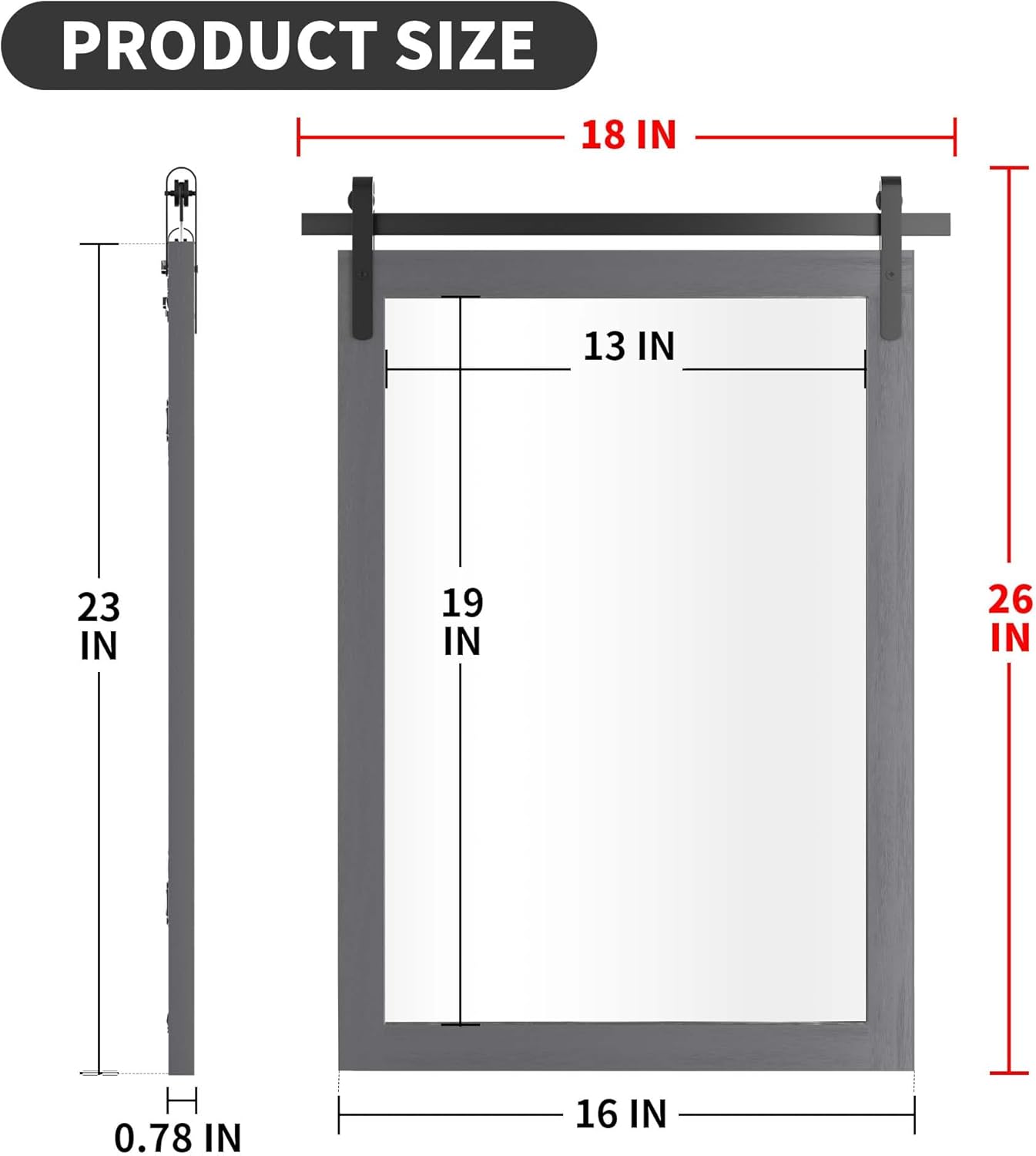 Farmhouse Wall Mirror, Rustic Wood Frame Bathroom Mirror Barn Door Inspired Decorative Vanity Dress Mirrors for Living Room Entryway, 18x26 INCH Gray Vertical
