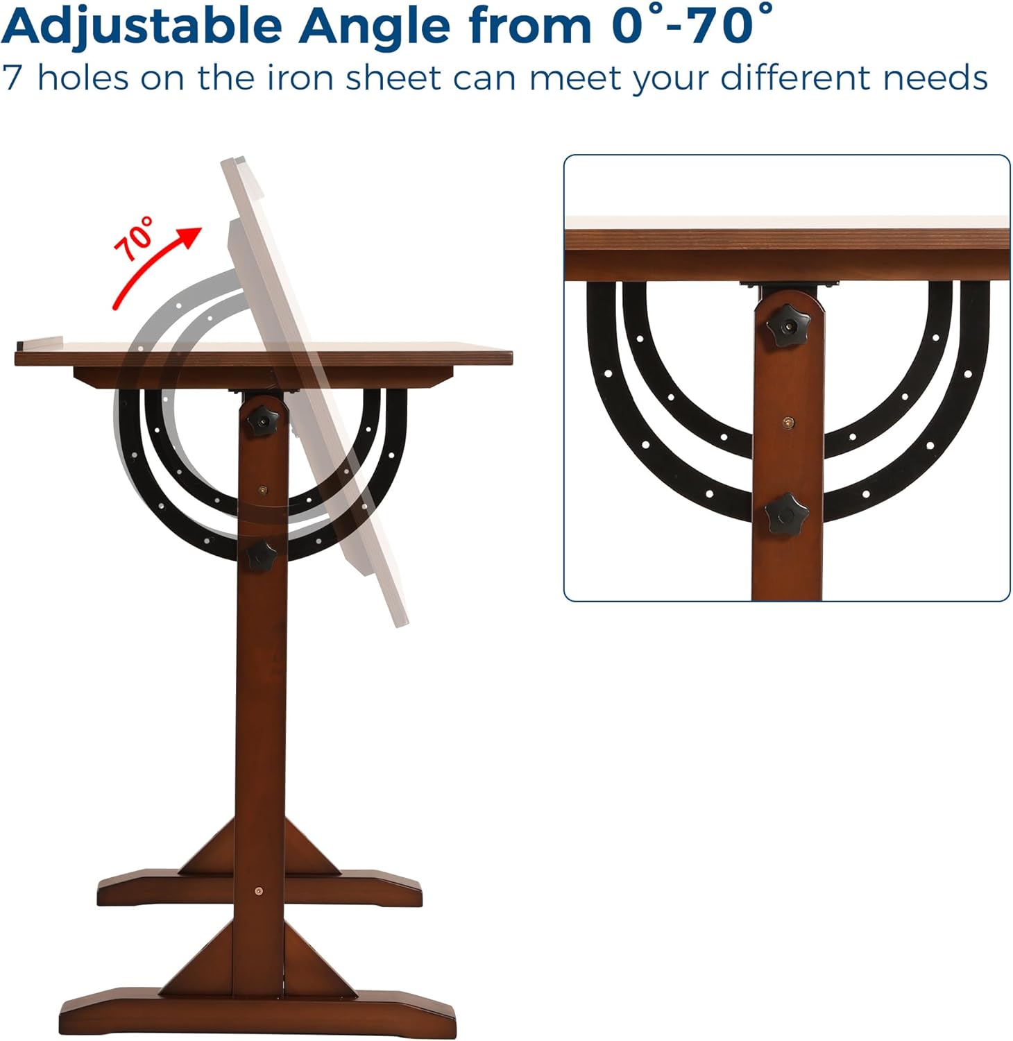 - ADJUSTABLE HEIGHT & ANGLE: Featuring adjustable angle and height, our artist table allows you to easily customize the tilt and height of the drawing surface. You can freely adjust heights from 34''-38'' and angles from 0°-70° according to your needs. A comfortable position can reduce strain on your neck and back and enhance the efficiency of the creative process