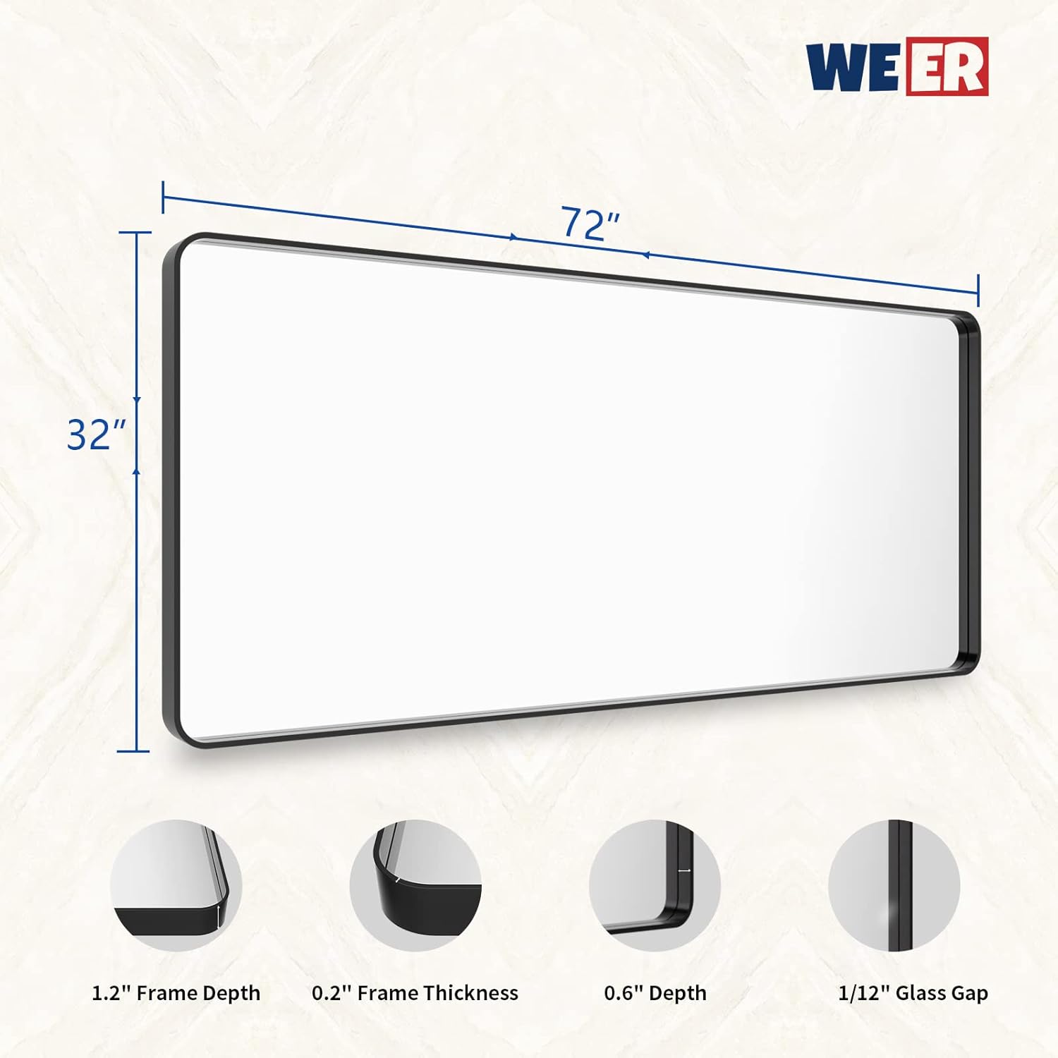 - 【Shatterproof Tempered Glass】: All WEER matte black mirror for bathroom is built with 4MM tempered glass which is shatter-proof, burst-proof and more safer to use. The shatterproof film is the important layer that will not splash into pieces when it's broken;