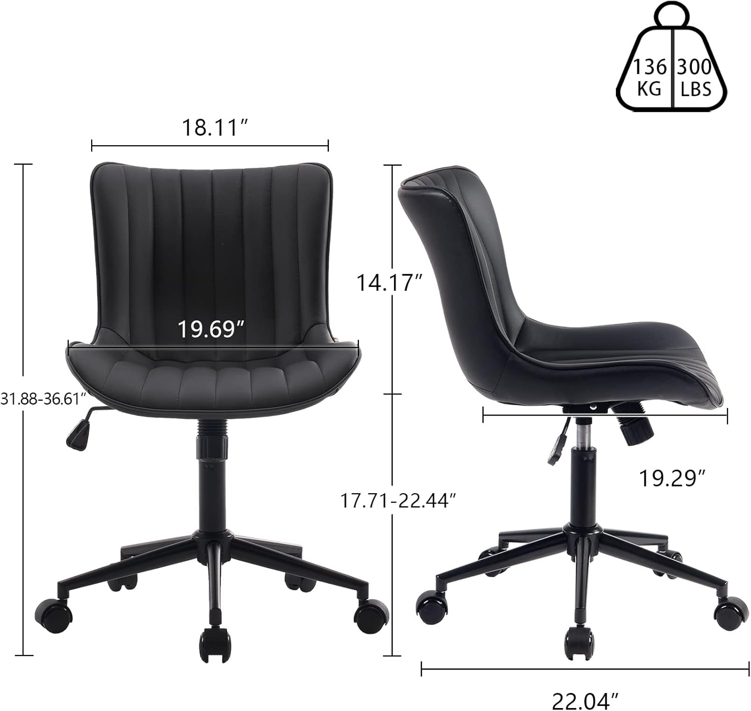 - 【Comfy Office Chair】This sewing task chair no arms is selected high-density elastic foam, high-quality breathable foam upholstery with upgraded artificial leather, coupled with a wide seat design, determines the absolute comfort of the seat. The high wing backrest design gives your back enough support and can effectively relieve pressure