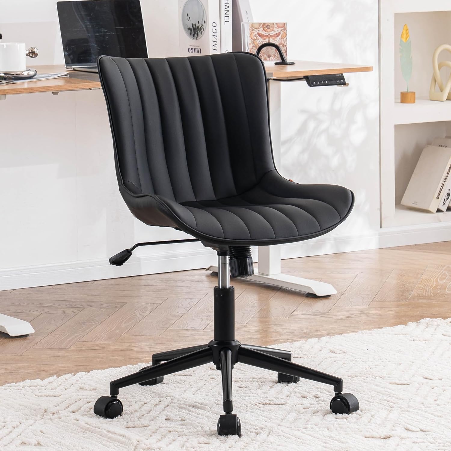 - 【Minimalist Design】This ergonomic home office desk chair is made of solid color faux leather with simple vertical stripe design, neatly articulated seams and smooth lines, which makes the rolling chair more unique, stylish and elegant, and it can be matched with any furniture decorations. Combines stability and durability for a long service life