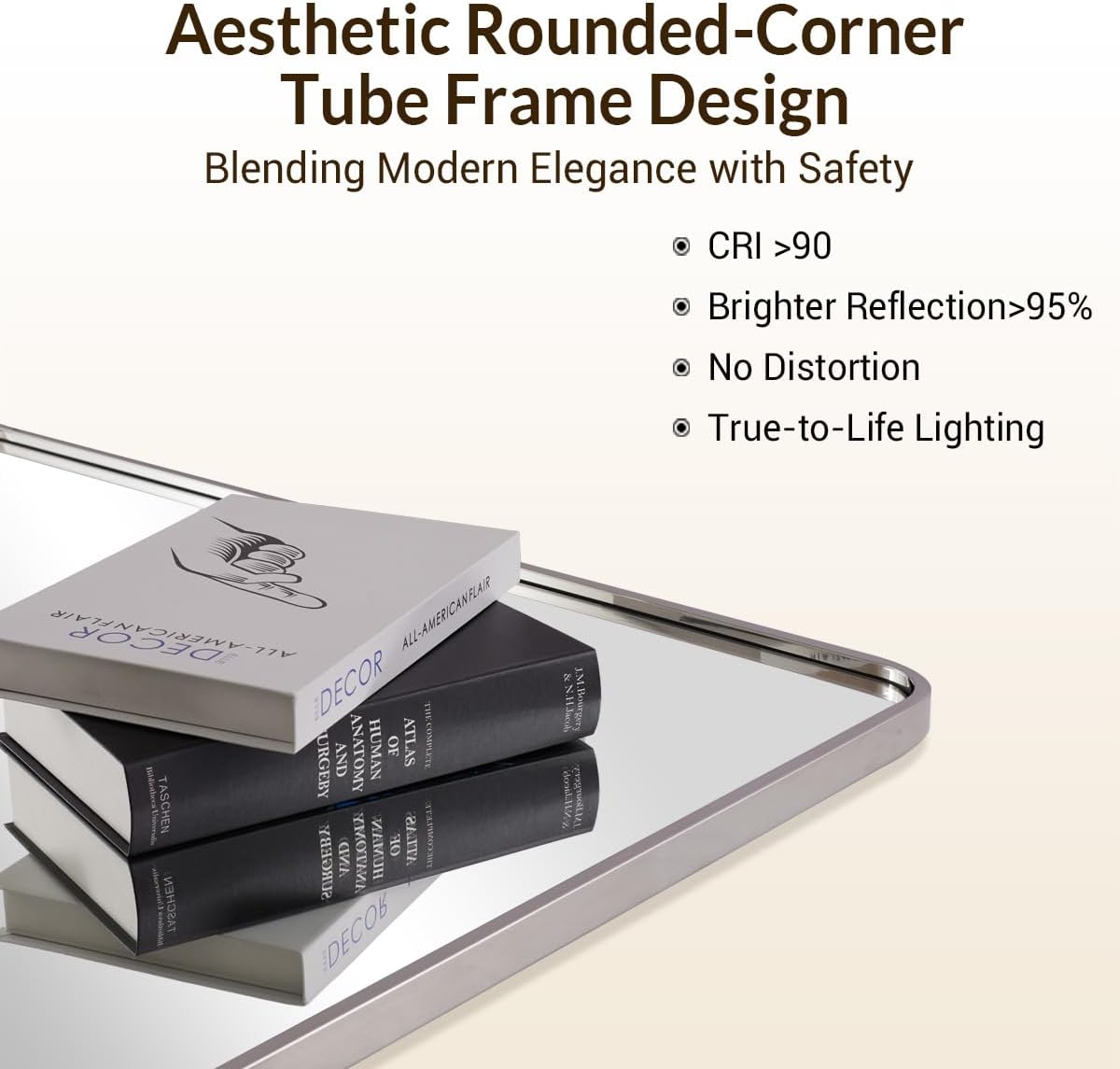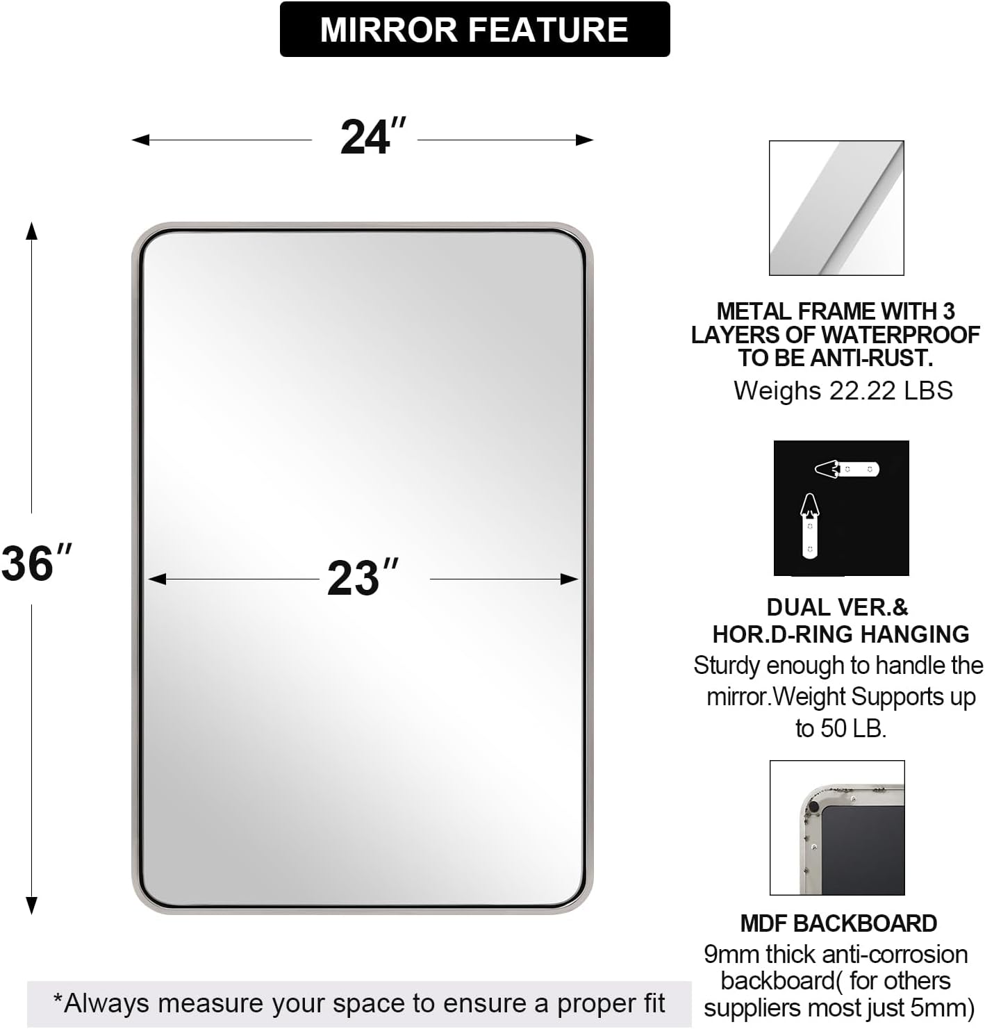 ANDY STAR Chrome Mirrors for Bathroom, 24x36’’ Rounded Rectangle Mirror, Chrome Bathroom Vanity Mirror, SUS304-Anti-Rust, Wall-Mounted Horizontal/Vertical 1’’ Deep