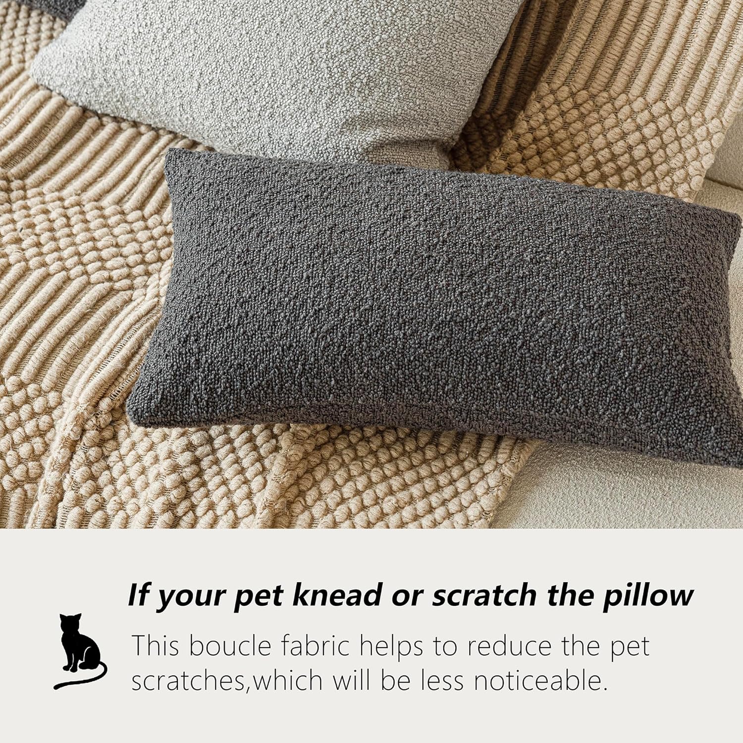 Foindtower Pack of 2 Textured Boucle Throw Pillow Covers Accent Solid Decorative Lumbar Pillow Cases Woven Couch Cushion Case for Sofa Living Room Home Decor, 12 x 20 Inch,Dark Grey