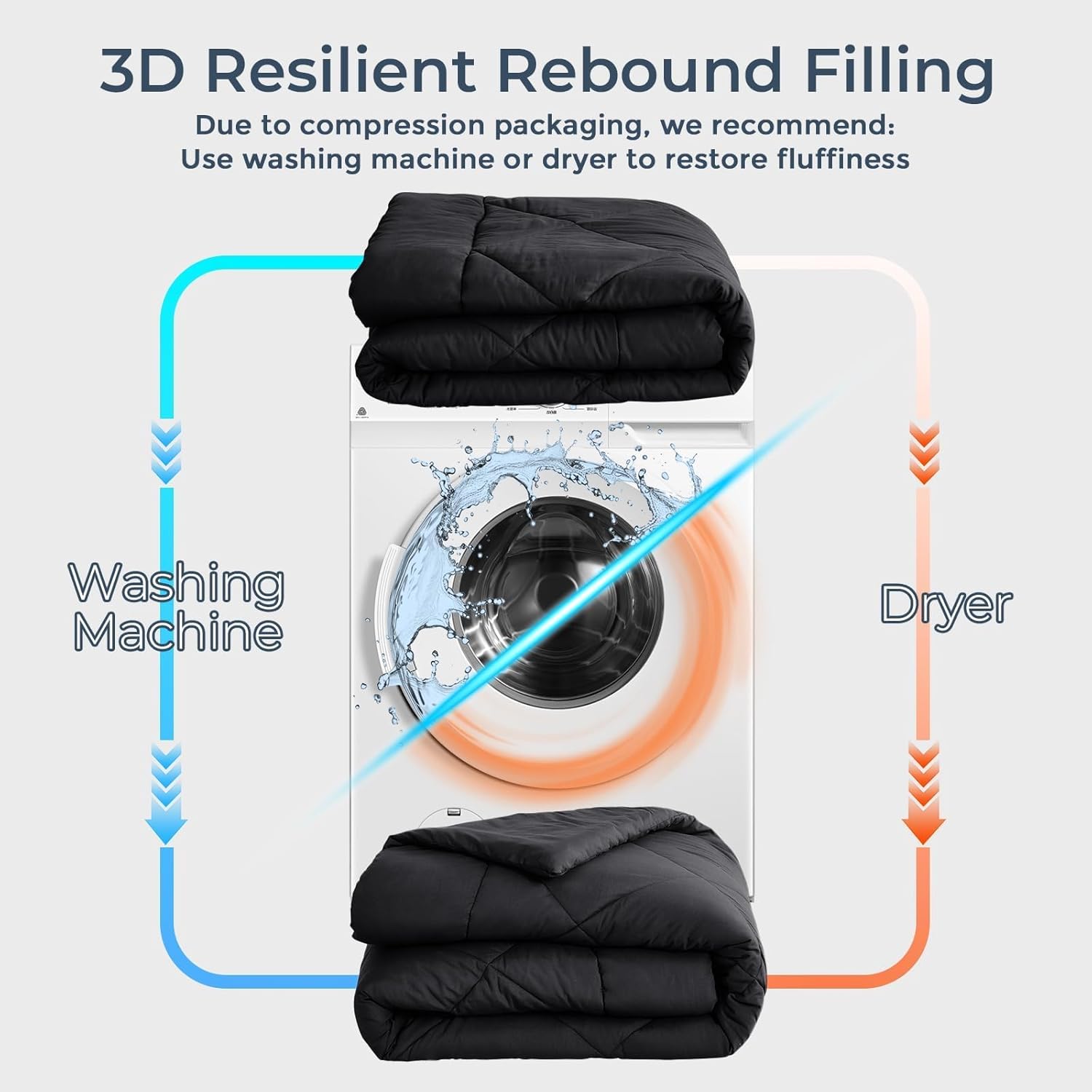 HEVUMYI Black Twin Comforter Set - 5-Piece All Season Bed in a Bag Twin, Ultra Soft Bedding Set with Comforter, Flat Sheet, Fitted Sheet, Pillowcases, Pillow Shams, Black