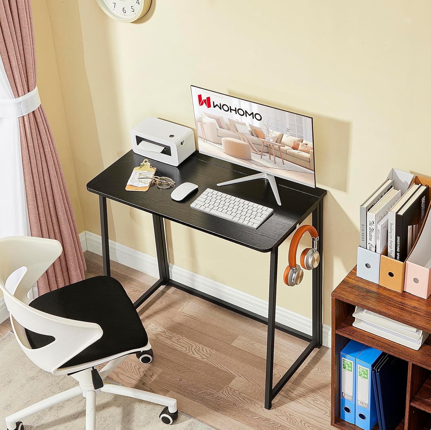 WOHOMO Folding Desk, 39.4" Narrow Writing Foldable Desk, Space-Saving Laptop Table, Easy Assemble Workstation for Home Office, Black