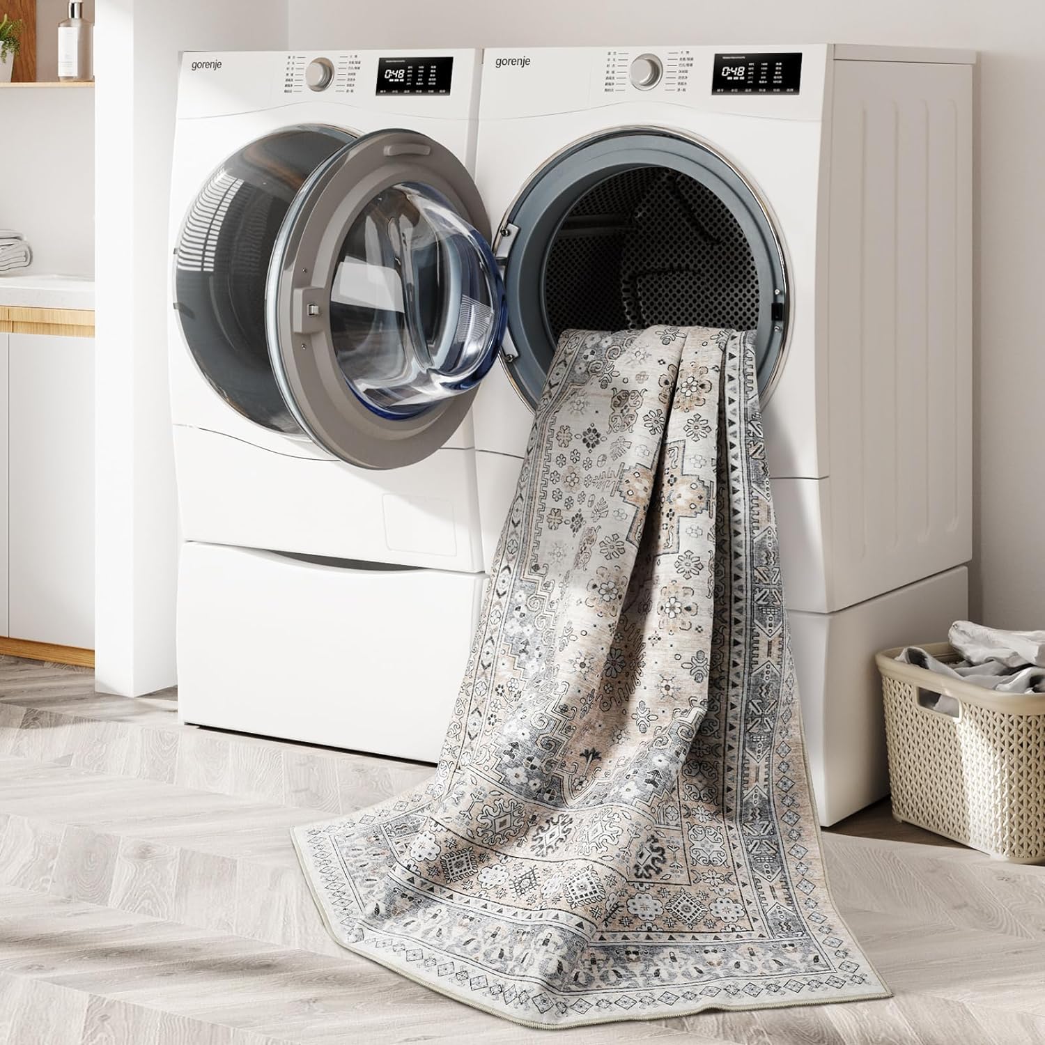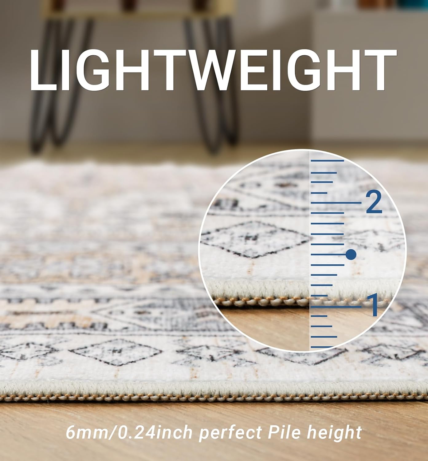 zesthome 6x9 Area Rug, Super Soft Washable Rugs for Living Room, Non-Slip Stain Resistant Vintage Rugs, Ultra-Thin Large Area Rugs (Beige,6'x9')