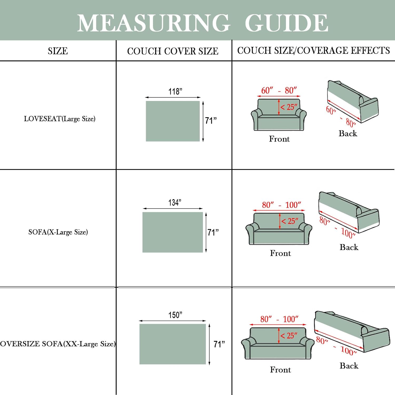 - ๐HOW TO CHOOSE: Please measure your furniture before you buy. We recommend Large Size 71"x 118 " for loveseat; X-Large Size 71" x 134" for sofas; XX-Large Size 71" x 150" for oversize sofas; Suitable for most couch, Provide perfect coverage for the sofa (including armrests)
