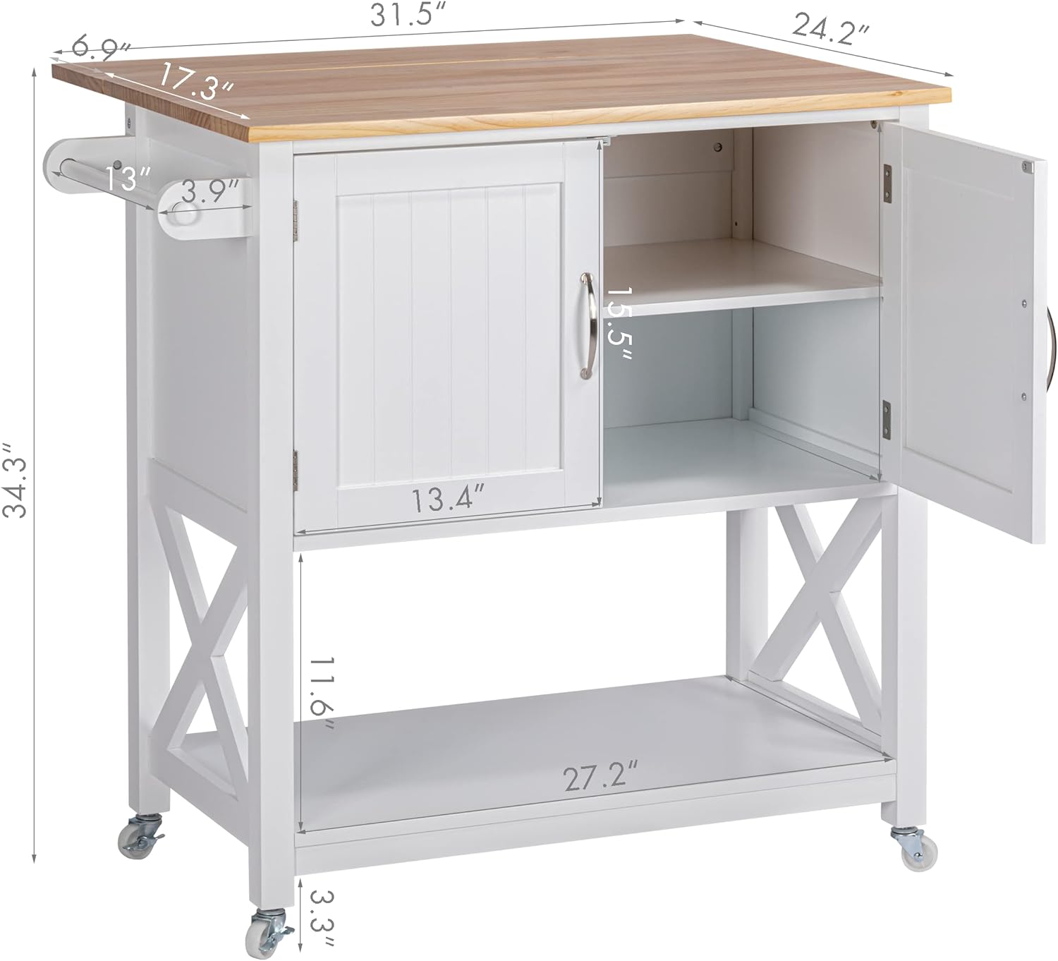- Easy Assembly: With step-by-step instruction and numbered accessories, the kitchen island on wheels is easy to assemble. Overall Size of the kitchen storage cart: 31.5'' x 24.2'' x 34.3''(L x W x H).