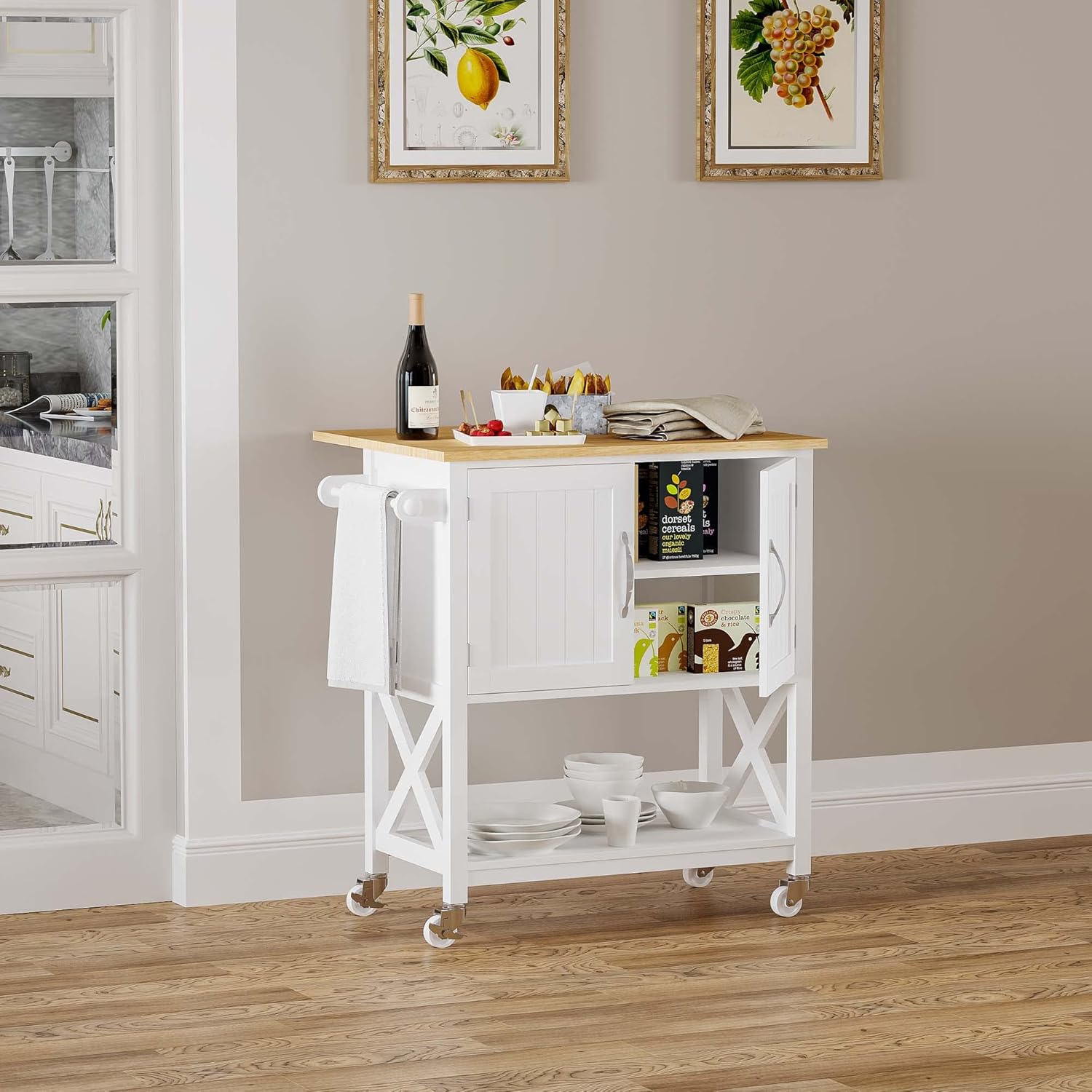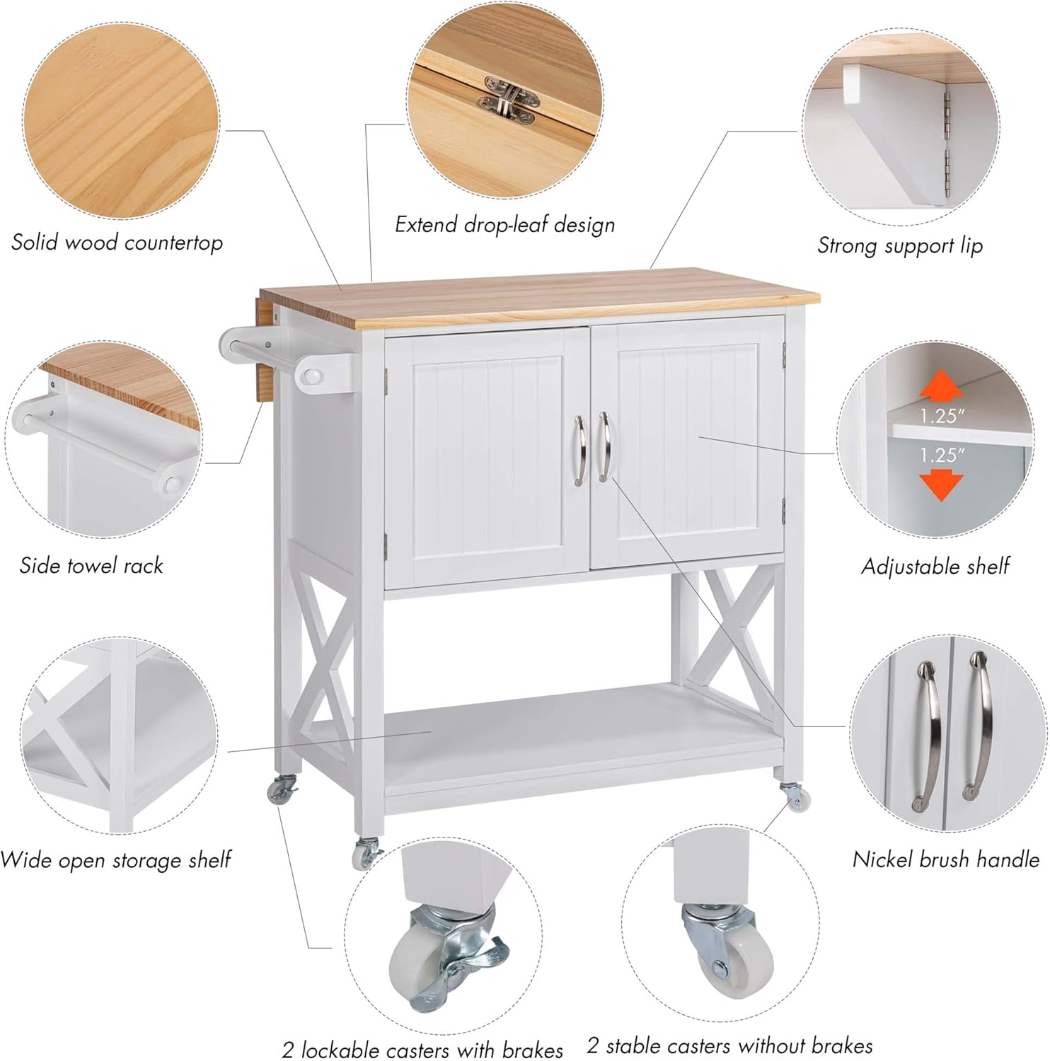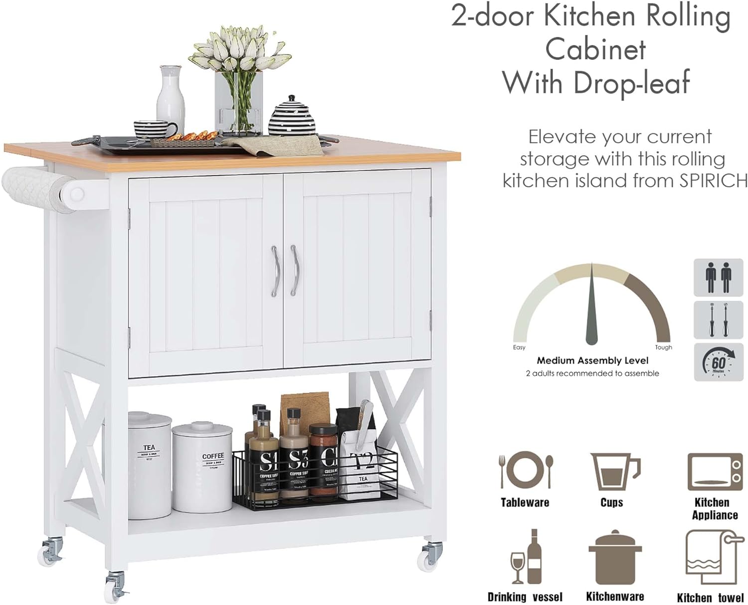 Spirich Kitchen Island on Wheels, Rolling Kitchen Cart with Storage Cabinet, Small Kitchen Island with Drop Leaf and Towel Rack for Dining Room, White