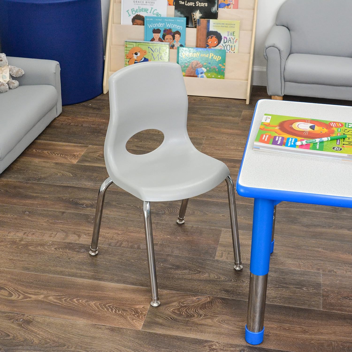 Children’s Factory MyPosture 14" H Child Chair, 4 Pack, Gray with Chrome Legs, AB8014GYC4, Daycare or Classroom Flexible Seating, Kids/Teen Classroom & School Desk Chair