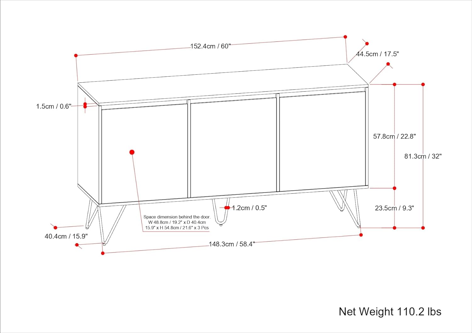 - DIMENSIONS: 60" W x17.5" D x 32" H