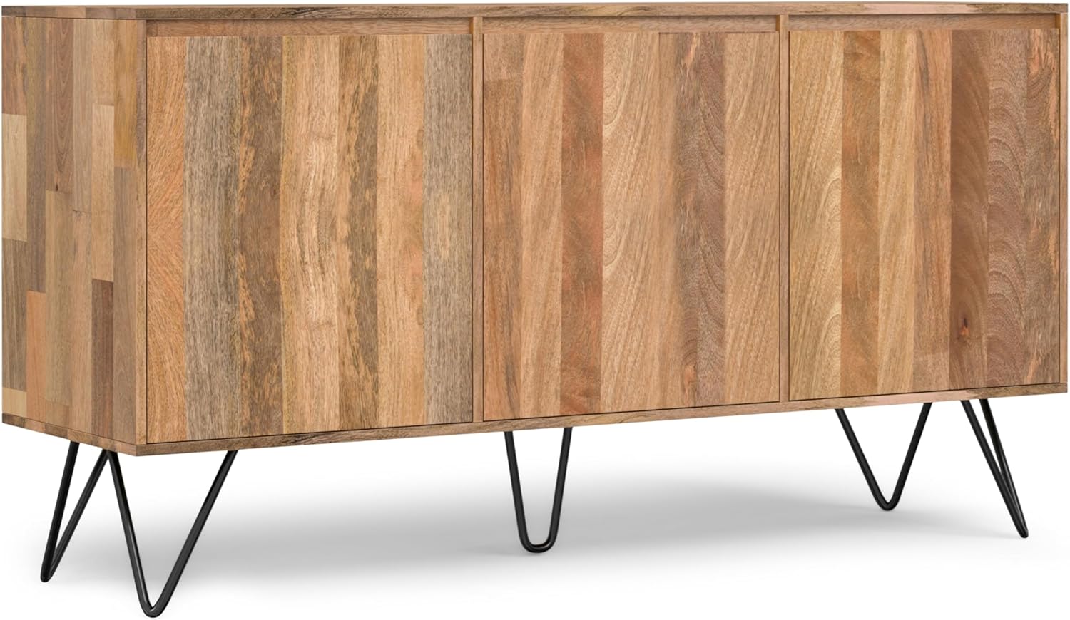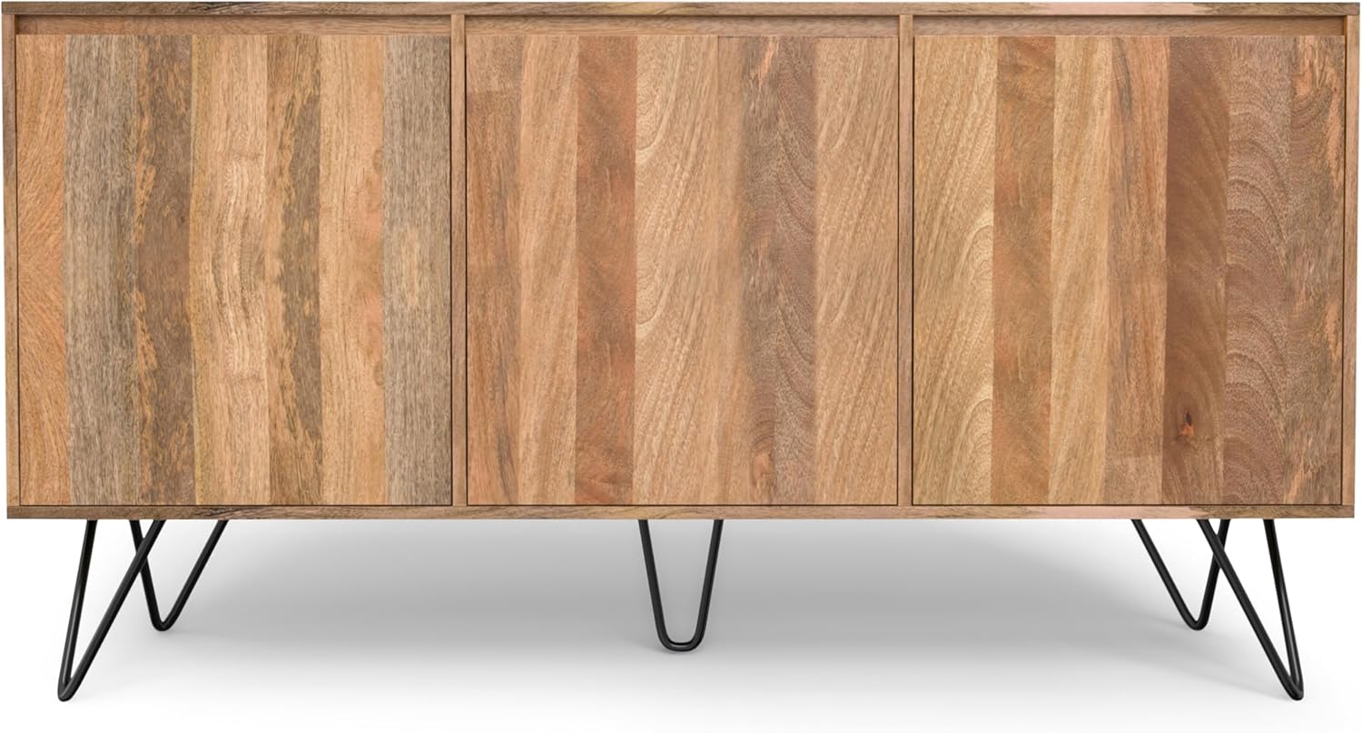 SIMPLIHOME Hunter Buffet - 60 inch Wide Solid Mango Wood 3-Door Sideboard Buffet in Natural, Contemporary Storage Cabinet for Dining Room or Kitchen with Adjustable Shelves and Metal Legs
