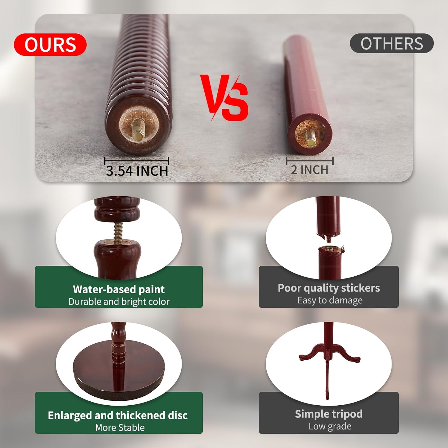 - STURDY AND STABLE STRUCTURE: The chassis of the wooden coat rack adopts a high-density compression version, thickened and enlarged circular chassis, which is stable and does not shake. The main pole diameter of 3.54inch, which is thick and sturdy and can bear 300 LBS