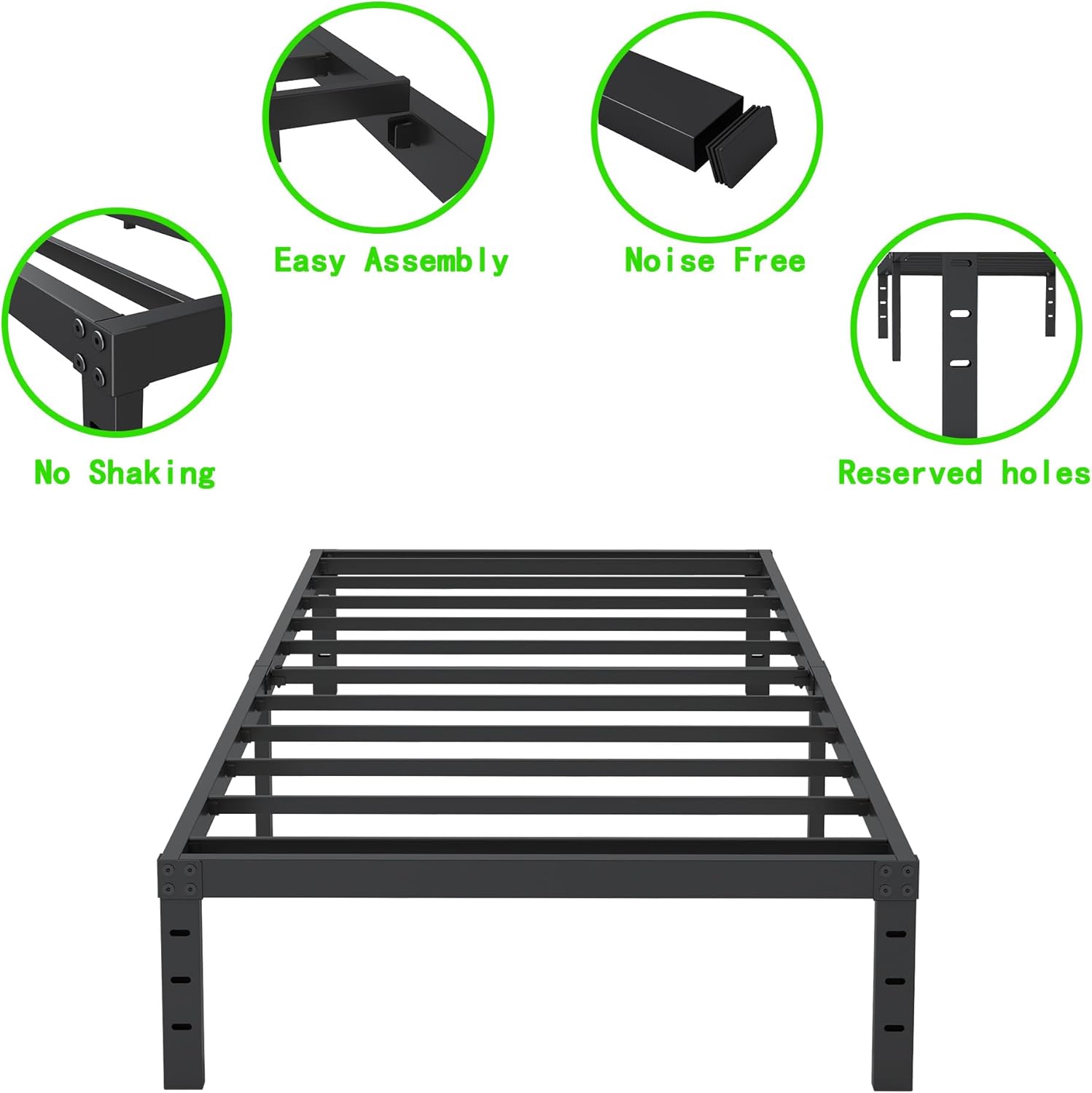 - Connection Headboard and Footboard: 3 holes on the twin xl platform bed frame's legs which will offer the convenience to connect your own headboard and footboard.