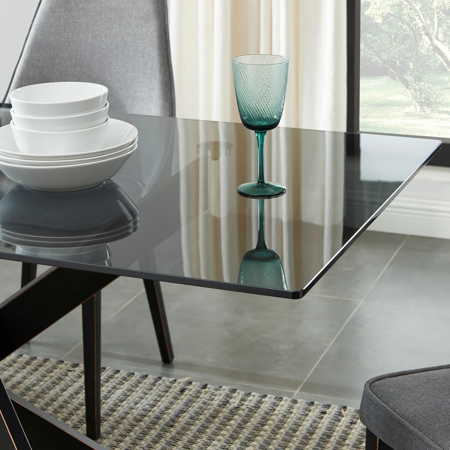 - Expansive Visual Appeal: This modern glass table features a gray tempered glass tabletop and intersecting black metal tubular legs that create an open and airy ambiance while enhancing the brightness of your living space. This versatile dining table is well suited for rooms of varying sizes, making smaller spaces appear more spacious and larger areas feel even more bright and inviting