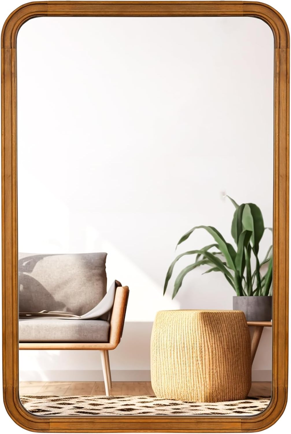 - Wood Rounded Corner Frame Design: This Wall Mirrors are handcrafted with care and attention to detail and design, High-Quality solid wood frame, and Mirror Materials to guarantee the sturdiness and consistent aesthetic beauty of the design.