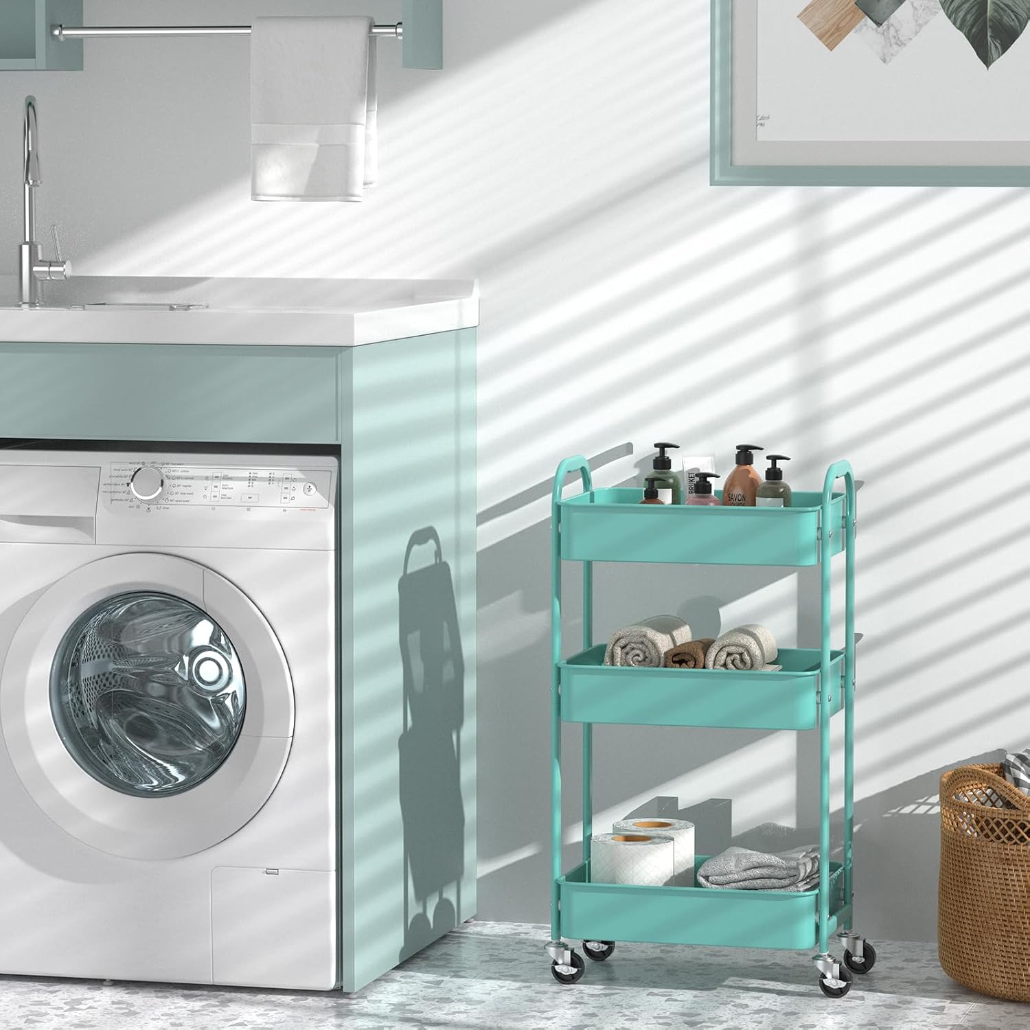 MAX Houser 3-Tier Rolling Utility Cart with Caster Wheels,Easy Assembly, for Kitchen, Bathroom (Turquoise)
