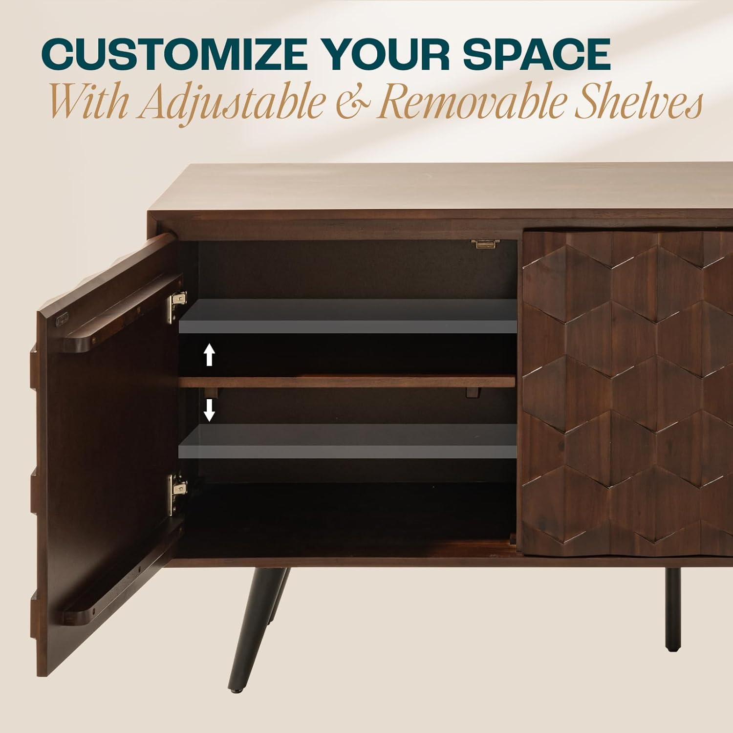Bme Sideboard Georgina Solid Wood 2 Doors & 3 Drawers, 61'' Mid Century Modern Cabinet with Geometric Pattern for Kitchen, Dining, Living Room