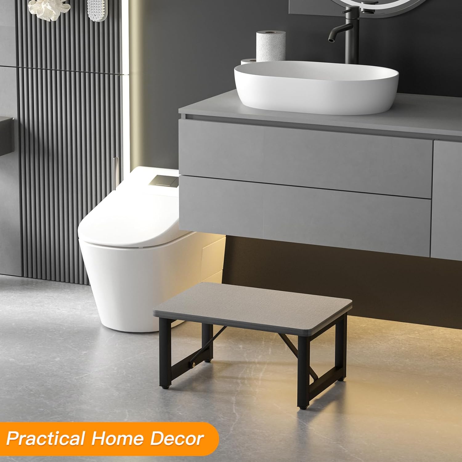 - Multi-Purpose Use: This grey step stool is a good assistant in various scenes. It could be a toddler step stool for bathroom sink, helping them washing hands and brushing teeth. It also can be a small shoe changing stool for toddlers, a foot stool under desk to relax your foot, and a short stand for objects like computer monitor.
