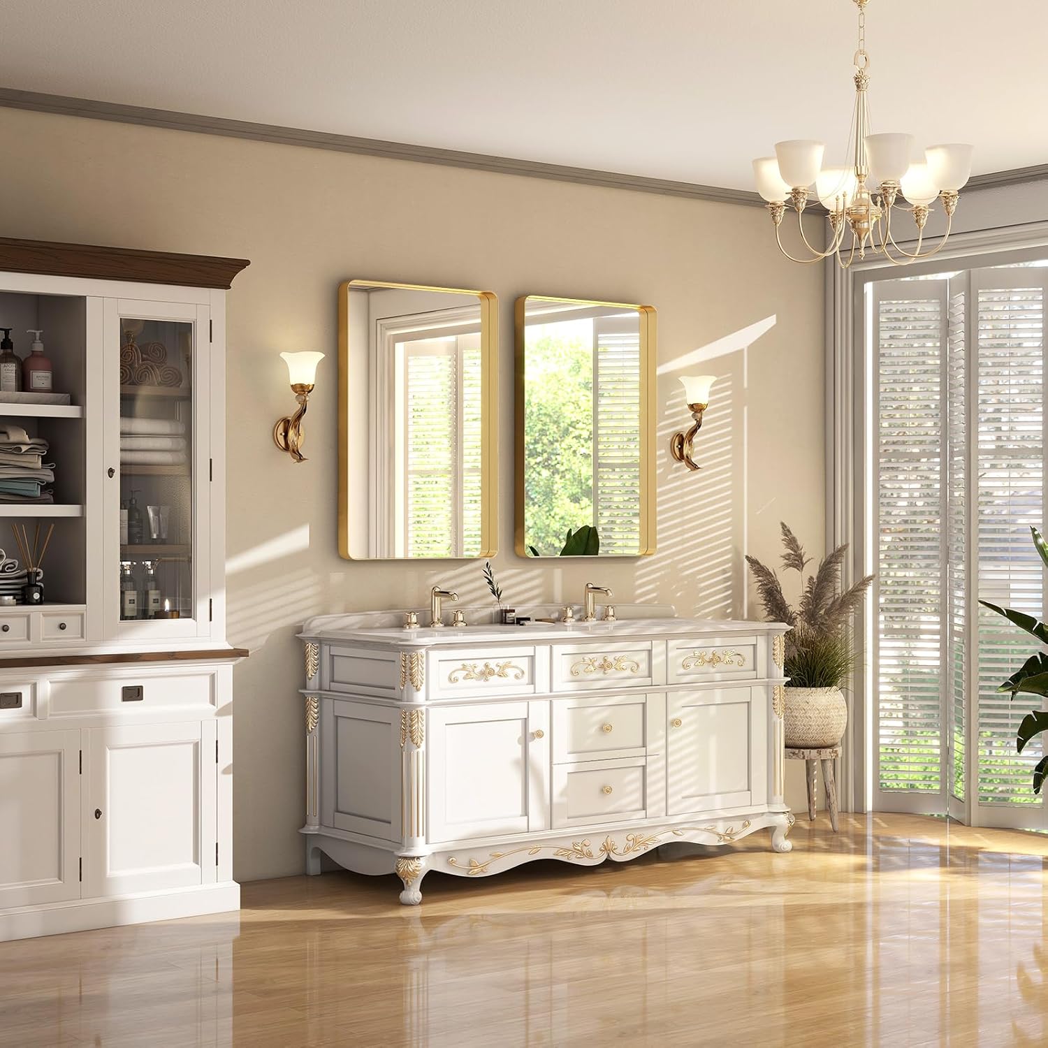 30 x 22 Inch Gold Bathroom Mirror for Wall,Aluminum Alloy Frame Rectangular Wall Mounted Mirror for Farmhouse Decor Horizontal or Vertical Ideal for Bedroom, Living Room