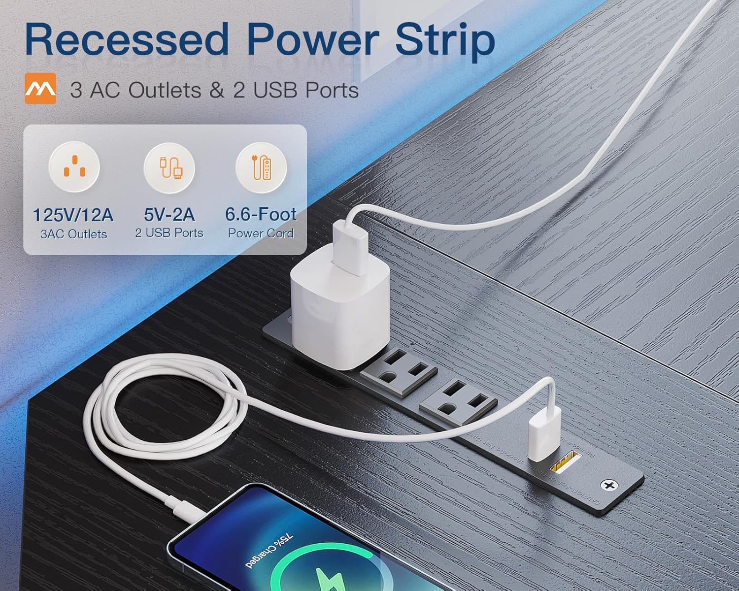 - 【USB Charging Ports & Power Outlets】: The l shaped computer desk features 3 standard plug outlets and 2 USB ports, allowing you to conveniently charge your laptop, smartphone, tablet, printer and gaming devices while you work or play games.