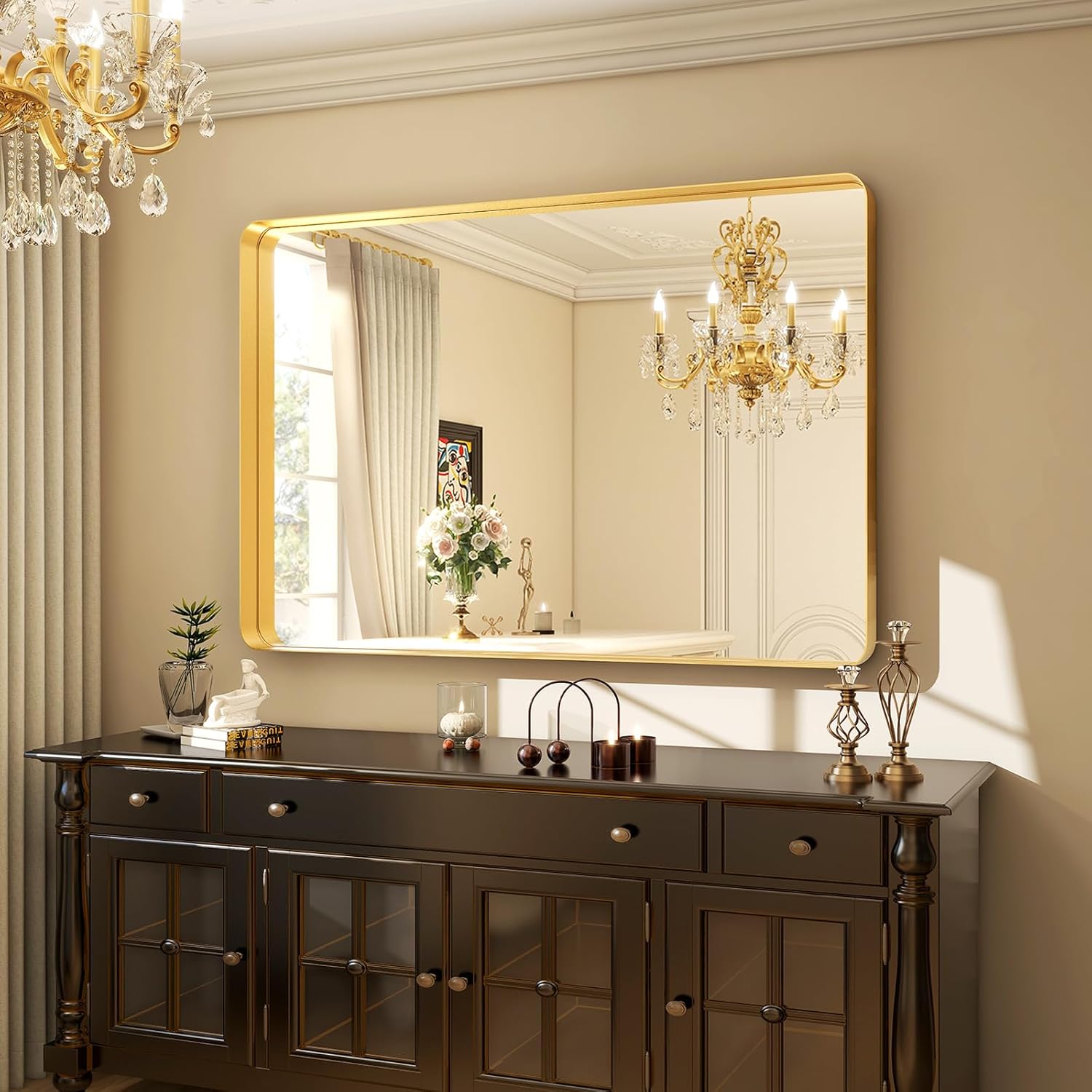 30 x 40 Inch Gold Bathroom Mirror for Wall,Aluminum Alloy Frame Rectangular Wall Mounted Mirror for Farmhouse Decor Horizontal or Vertical Ideal for Bedroom, Living Room