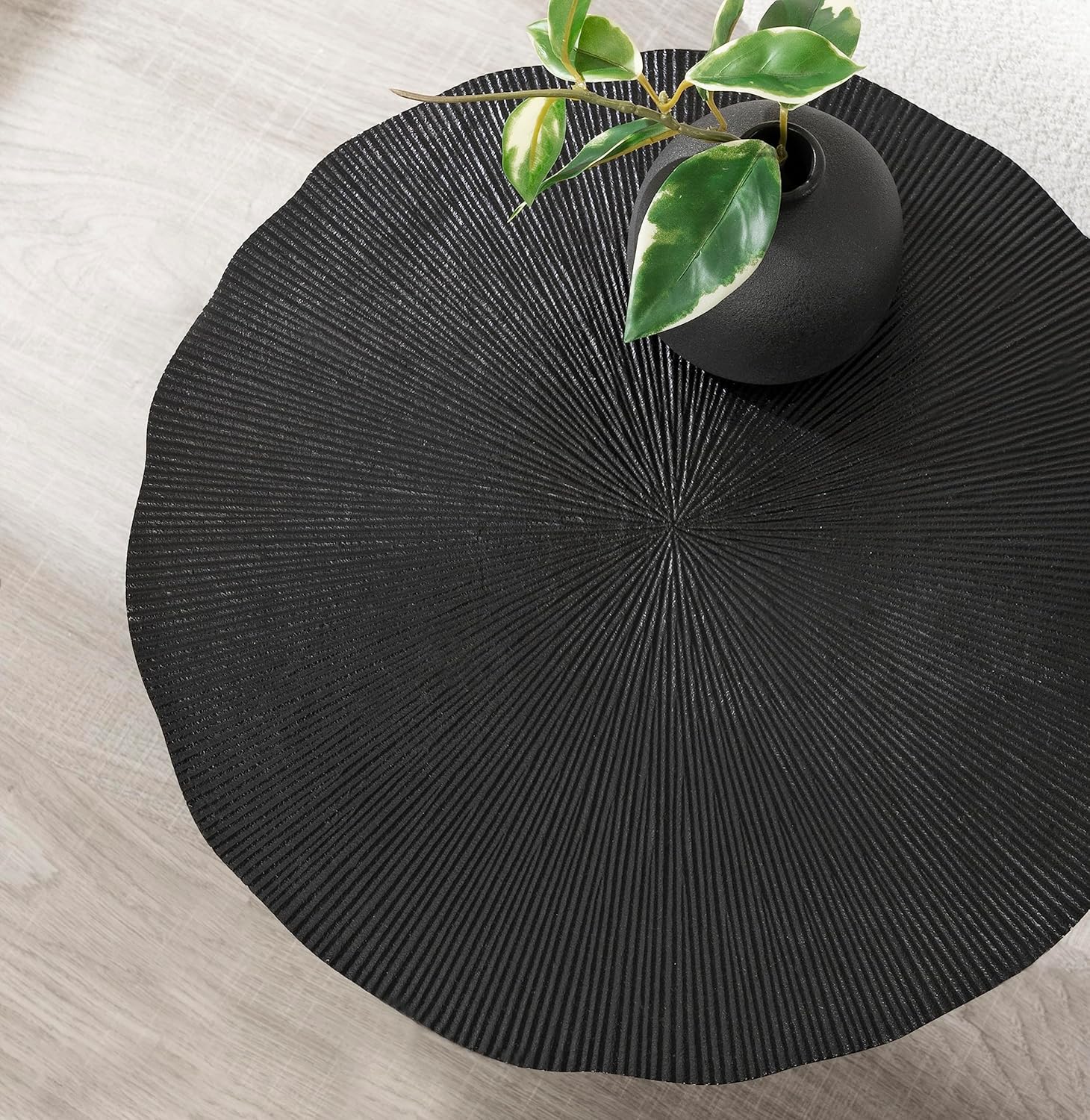 - Sophisticated Look: The Sancia side table was skillfully crafted by hand by professional artisans in India, utilizing a sand casting technique on the aluminum top to give it a textured feel and an embossed sunburst design