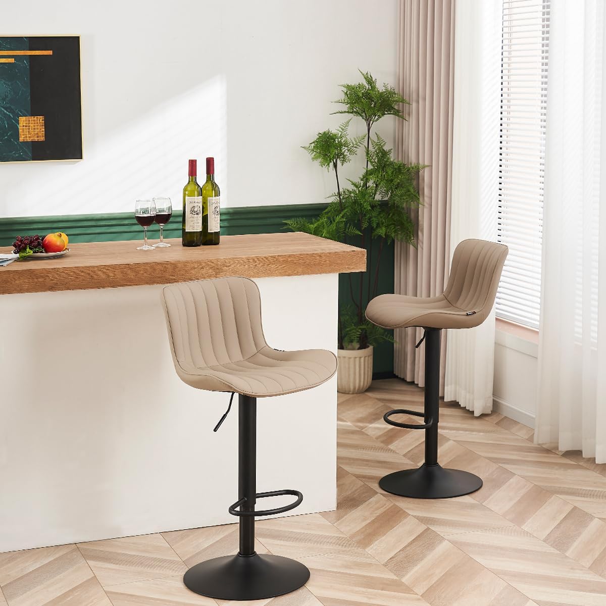 YOUNUOKE Counter Height Bar Stools Kitchen Island Barstools Set of 2 Adjustable Swivel Counter Stool Bar Height Island Chairs with Back, Khaki