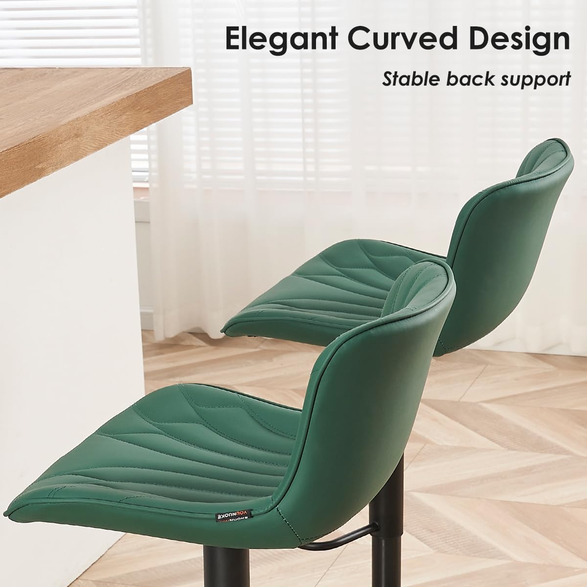 YOUNUOKE Bar Stools Set of 2, Counter Height Stools for Kitchen, 24 inch Swivel Barstools, Adjustable Island Chairs with Back, Dark Green
