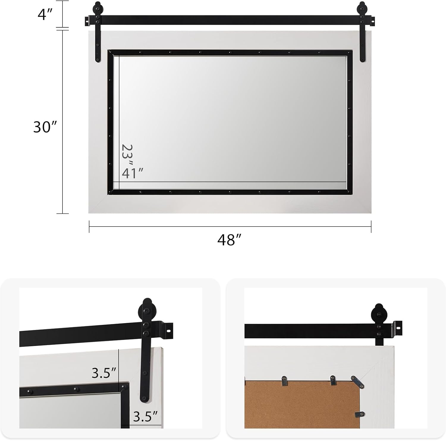 YOSHOOT Farmhouse Barn Door Mirror, 48"x30" Rustic Bathroom Mirror, Wood Frame Wall Mirror, Wooden Mirror for Living Room Bedroom Entryway Wall Décor, Horizontal Hanging ONLY