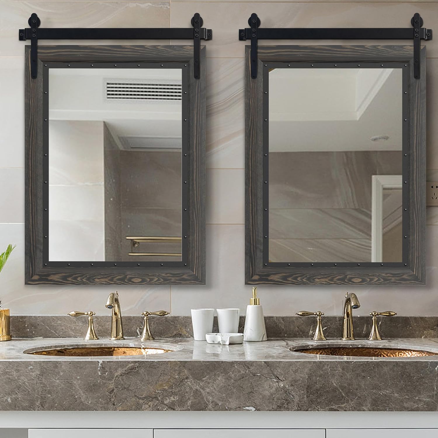 YOSHOOT Farmhouse Barn Door Mirror, 40"x30" Rustic Bathroom Mirror, Wood Frame Wall Mirror, Wooden Mirror for Living Room Bedroom Entryway Wall Décor, Vertical Hanging ONLY